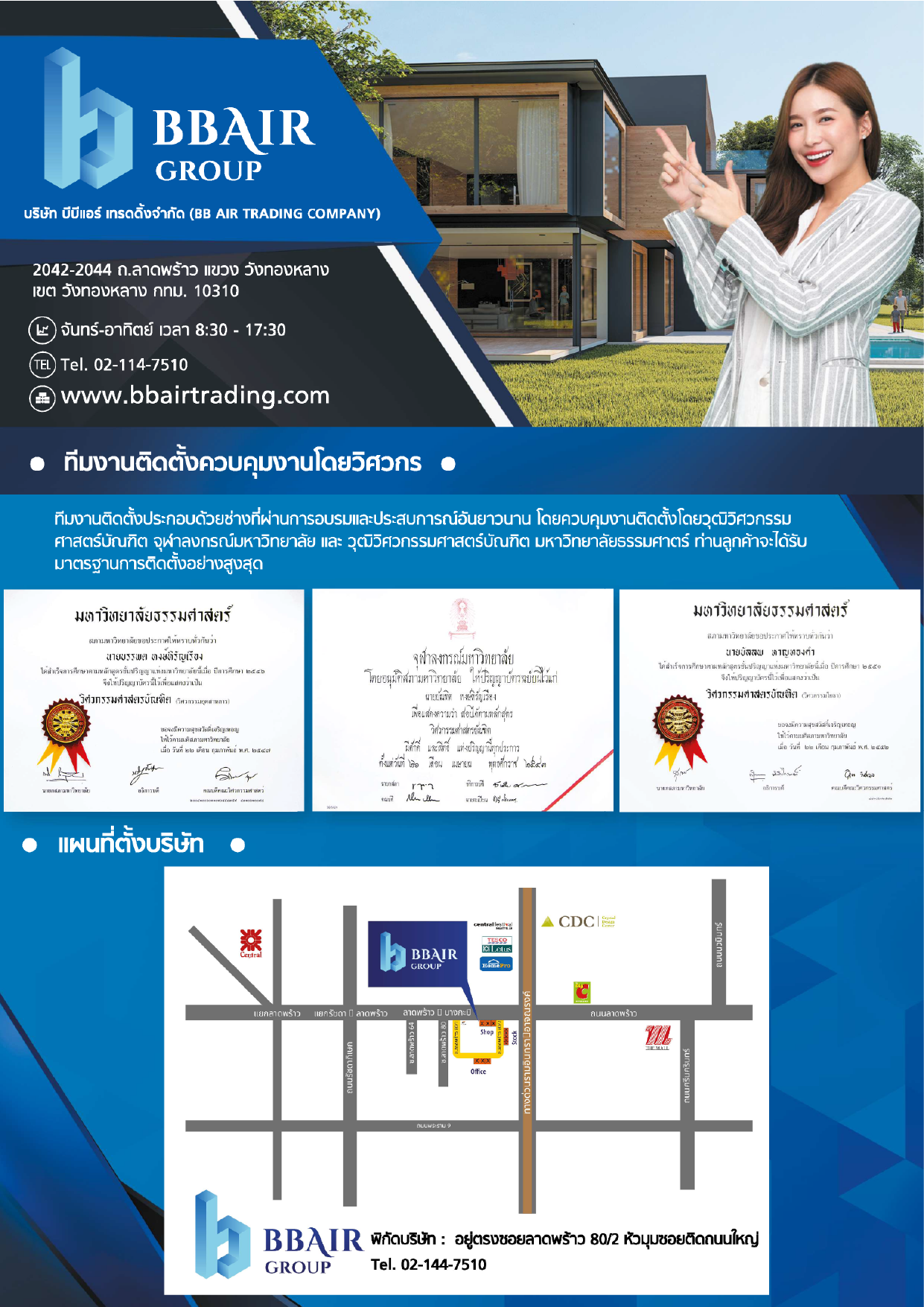 ขนาด 30,000-36,000 BTU ส่วนเกินคิดเมตรละ 80 บาท
