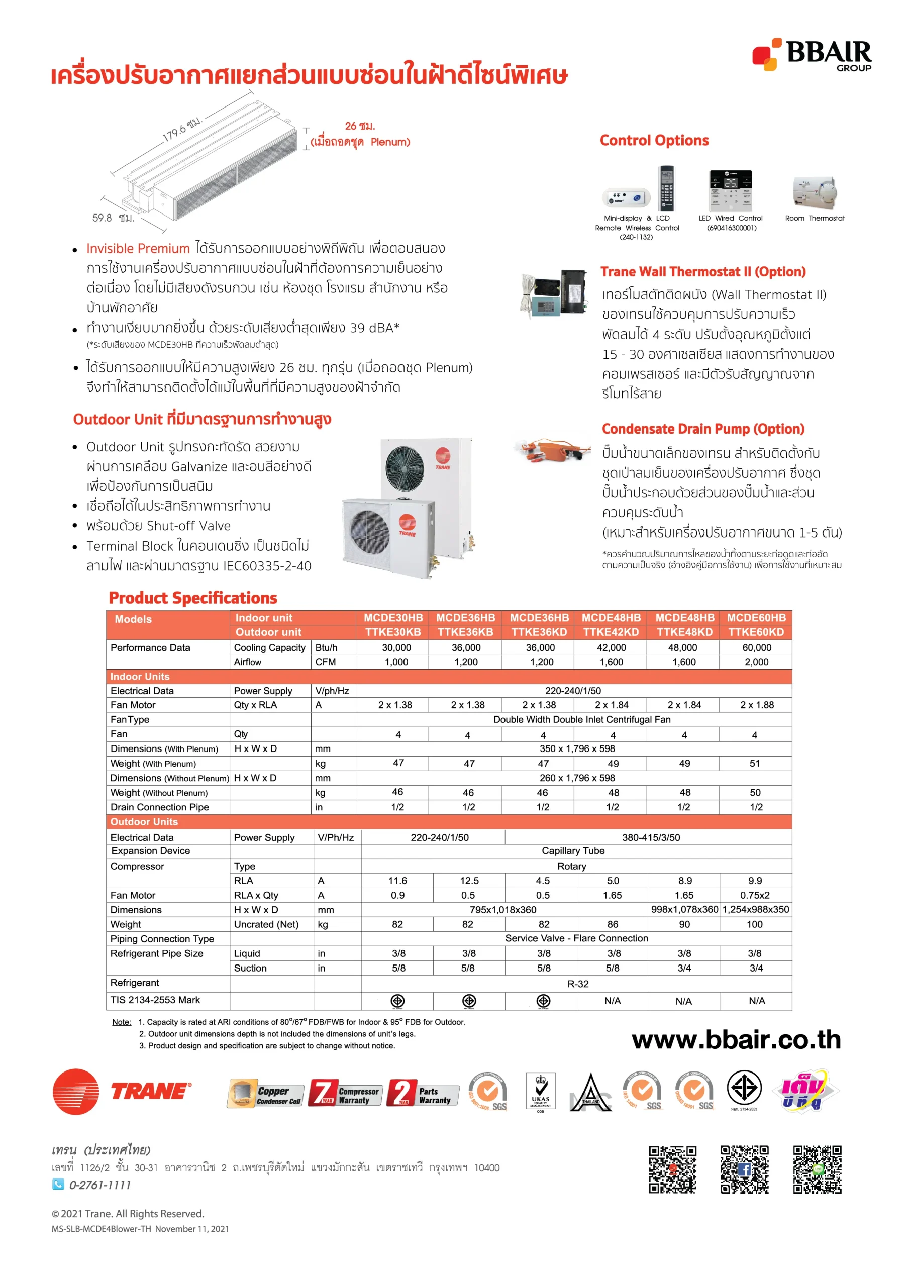 แอร์เทรน แบบแยกส่วนชนิดซ่อนในฝ้า INVISIBLE PREMIUM SERIES น้ำยาแอร์ R-32 เฉพาะเครื่อง