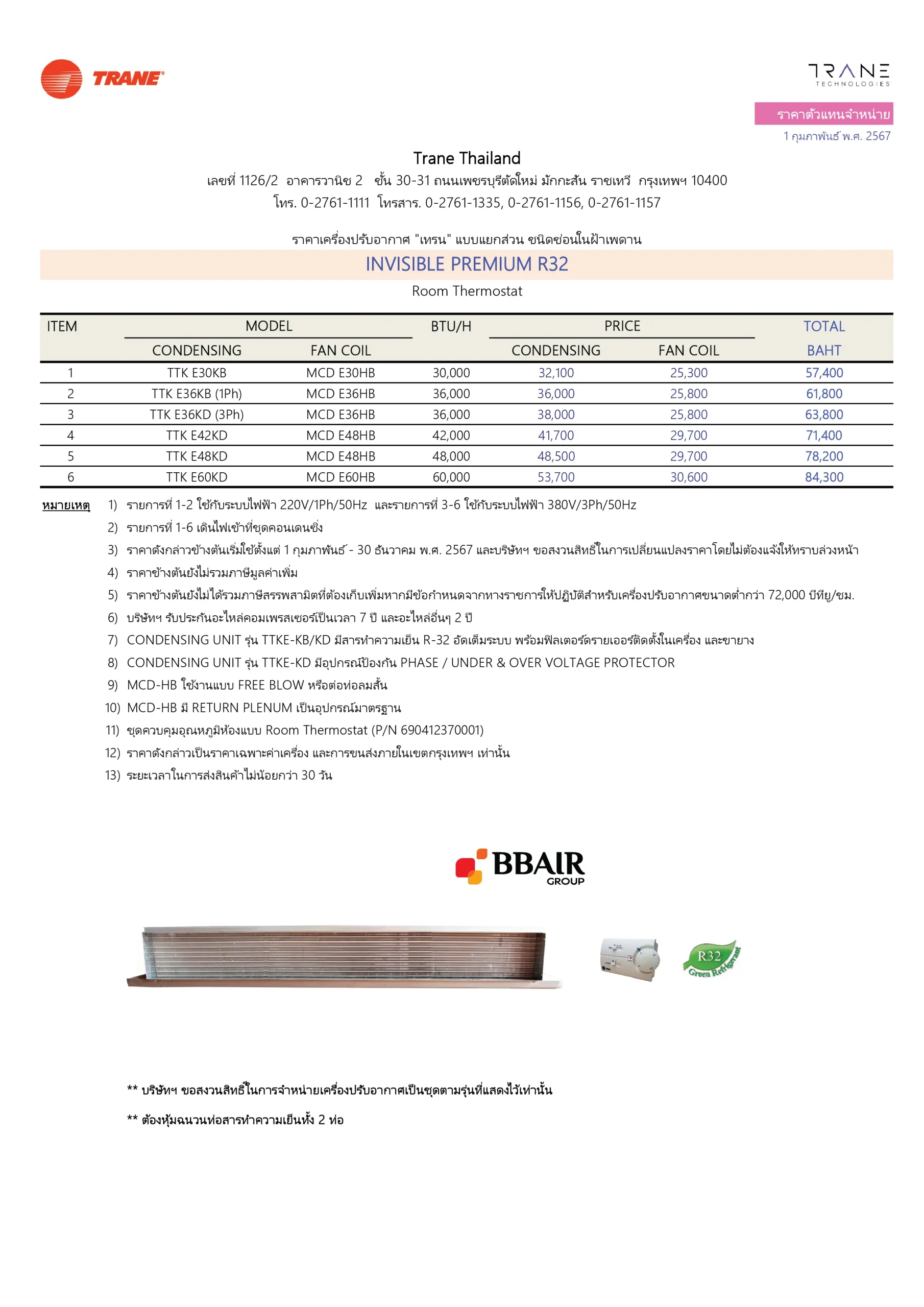 Air Trane  Concealed Type INVISIBLE PREMIUM SERIES  ,Refrigerant R-32