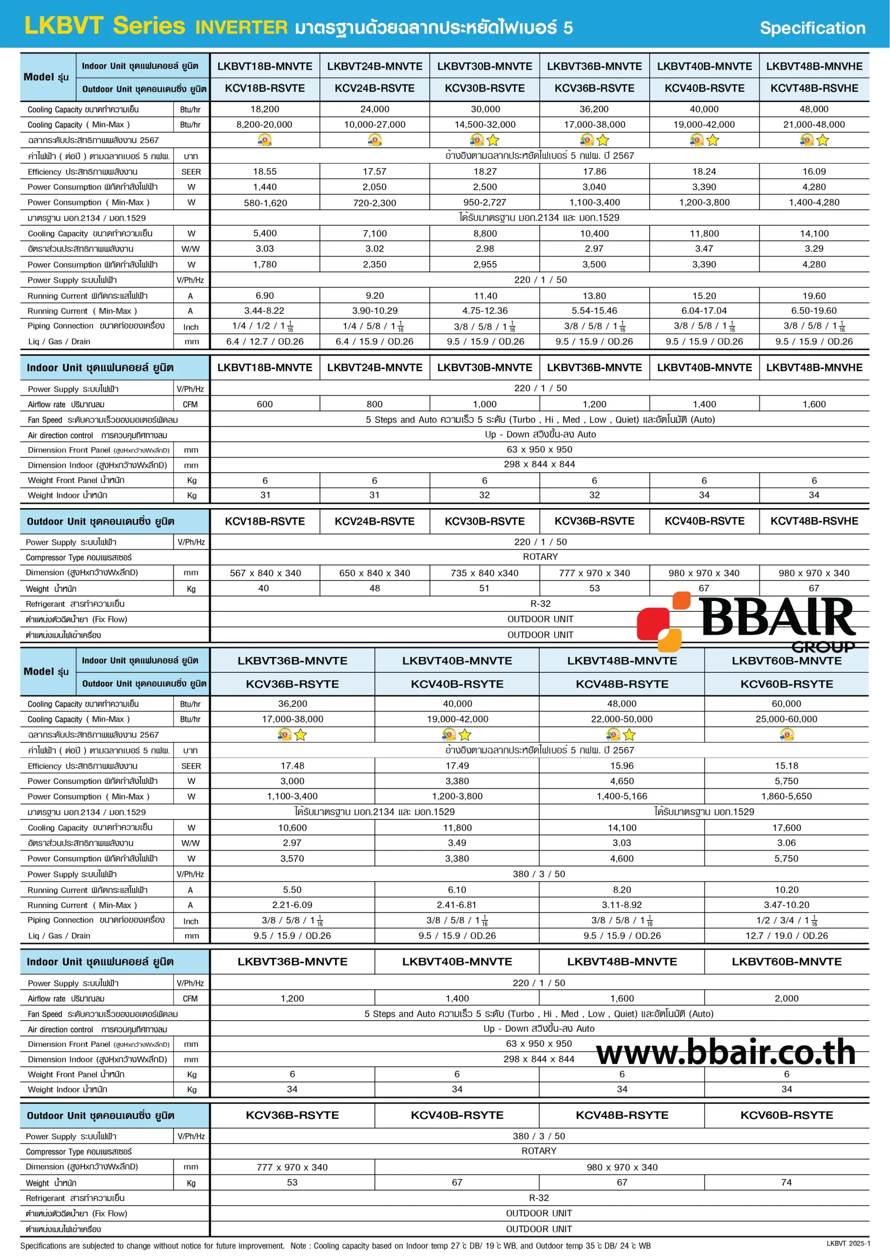• LKBVT SERIES แบบคาสเซ็ทไทป์ กระจายลม 4 ทิศทาง ขนาด 18,200-60,000 บีทียู มาตรฐานประหยัดไฟเบอร์ 5 และ 1 ดาว
