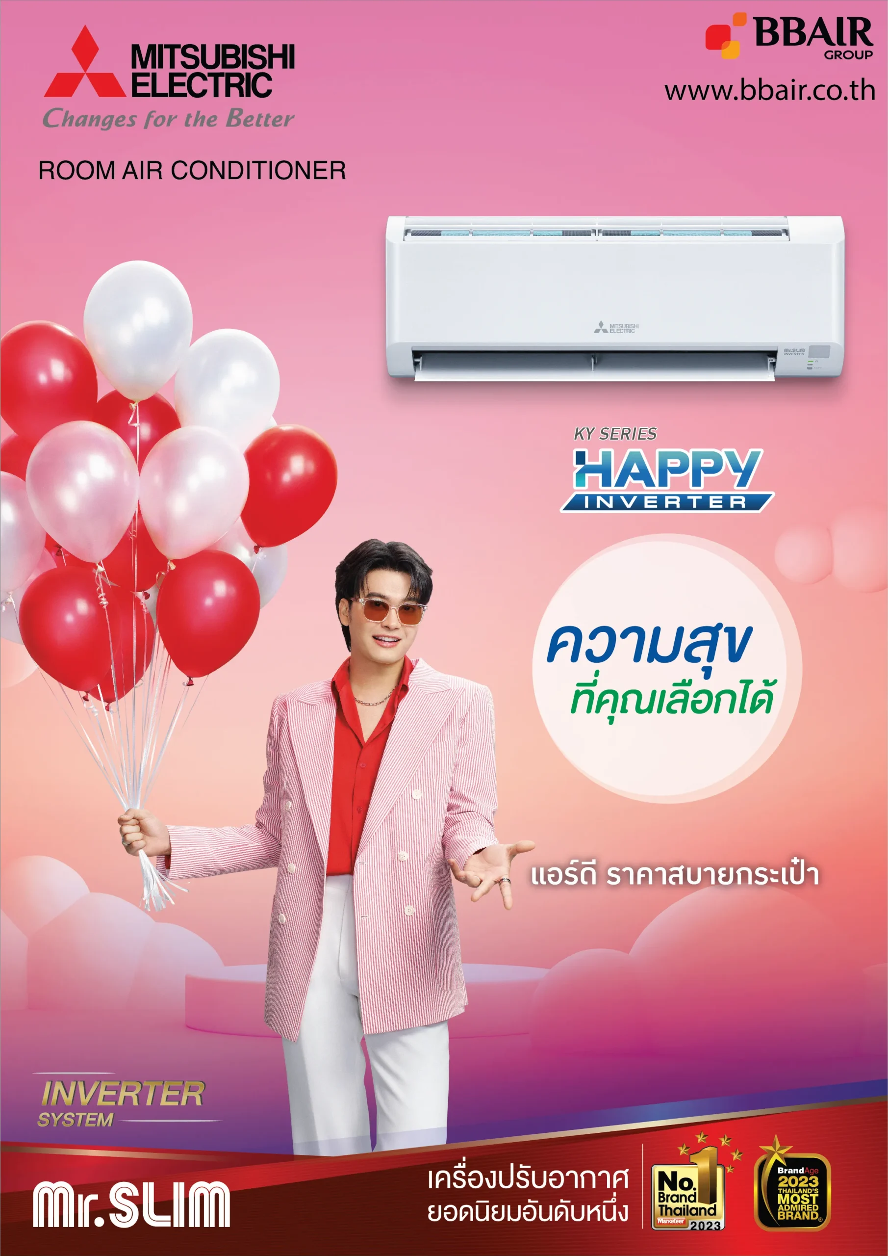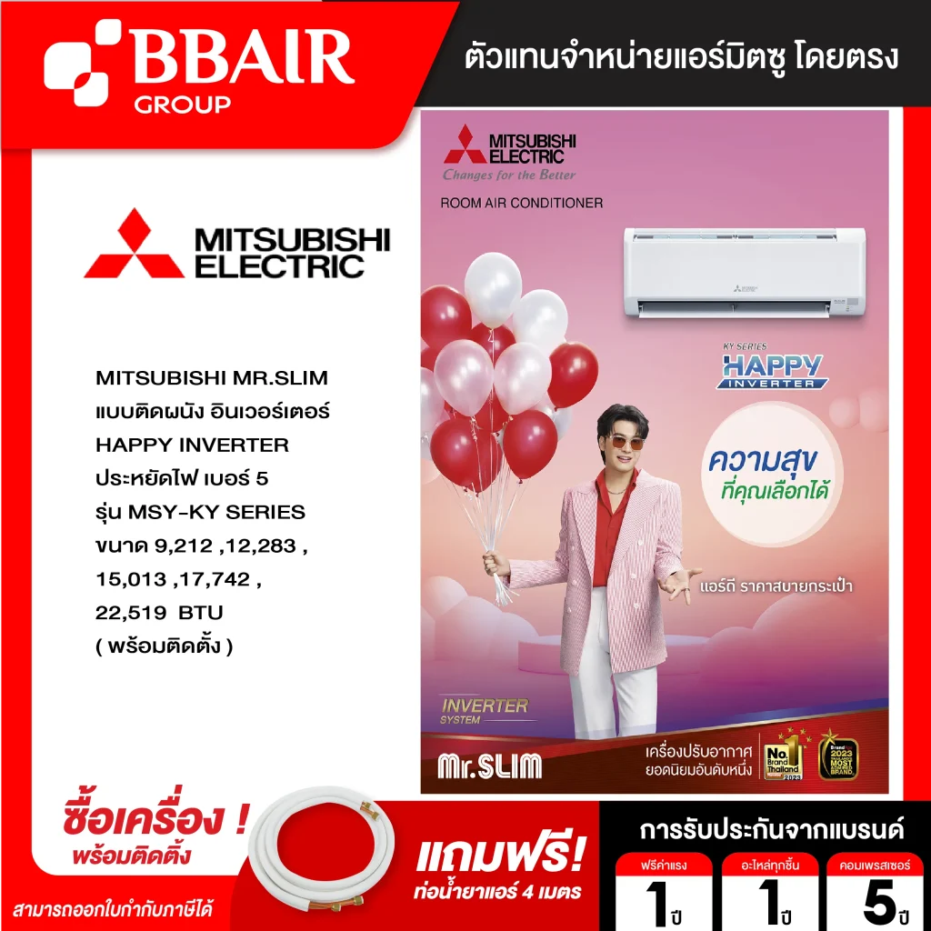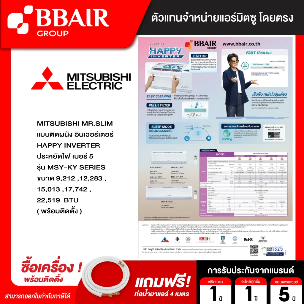 MITSUBISHI MR.SLIM แบบติดผนัง อินเวอร์เตอร์ HAPPY INVERTER MSY-KY SERIES พร้อมติดตั้ง