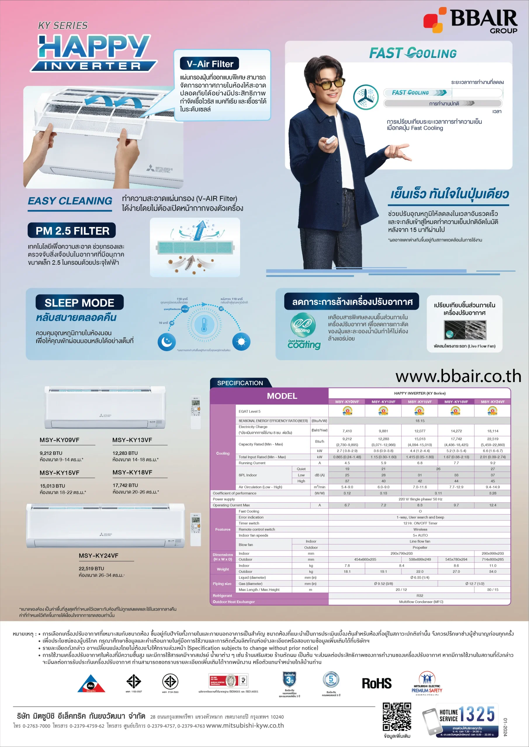 • MSY-KY24VF 22,519 /MUY-KY24VF 22,519 (ขนาด5,459-22,860 BTU )