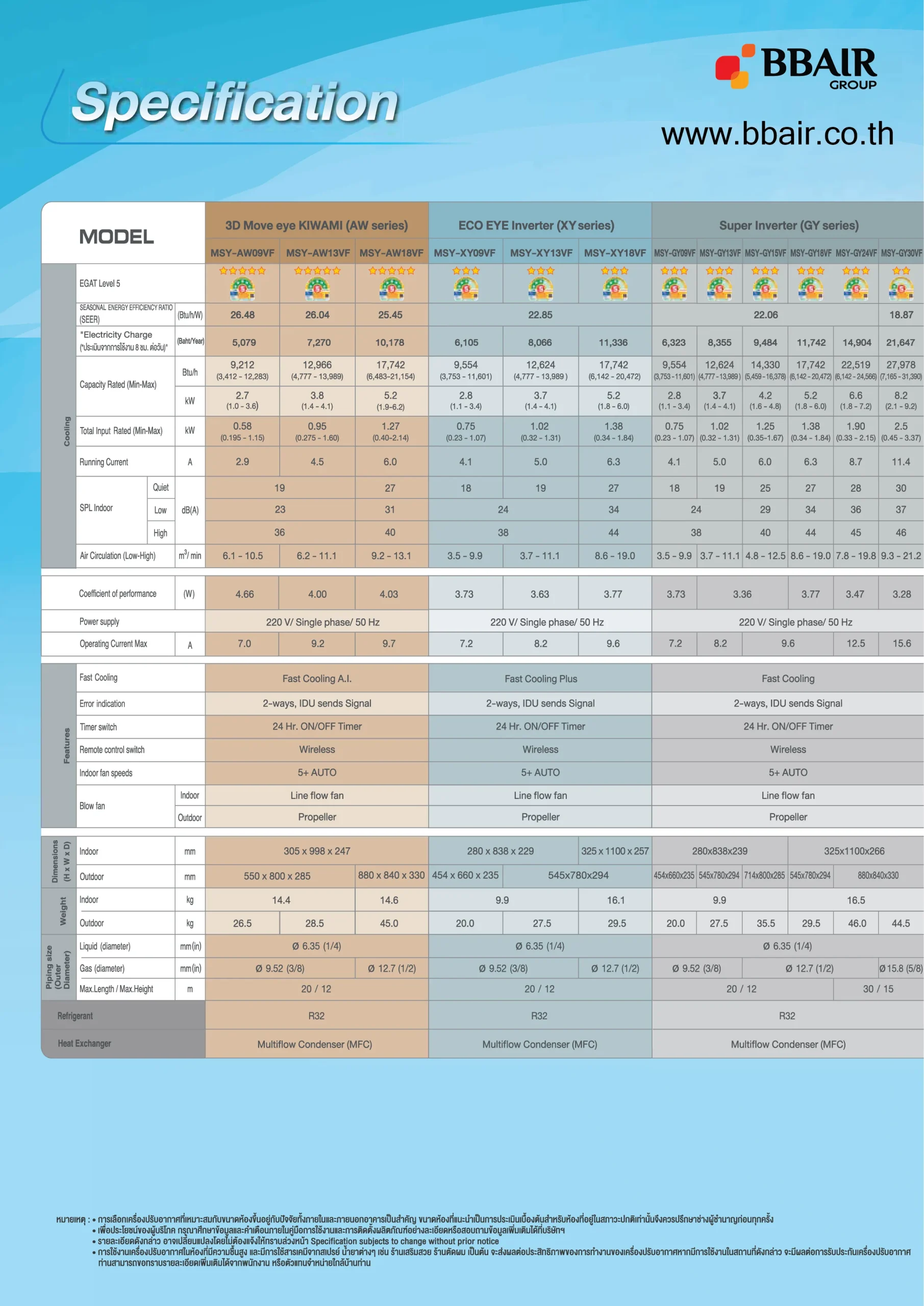 คุณสมบัติสินค้าของแอร์มิตซูบิชิ มิสเตอร์สลิม แบบติดผนัง อินเวอร์เตอร์ ECO EYE INVERTER MSY-XY SERIES น้ำยาแอร์ R-32