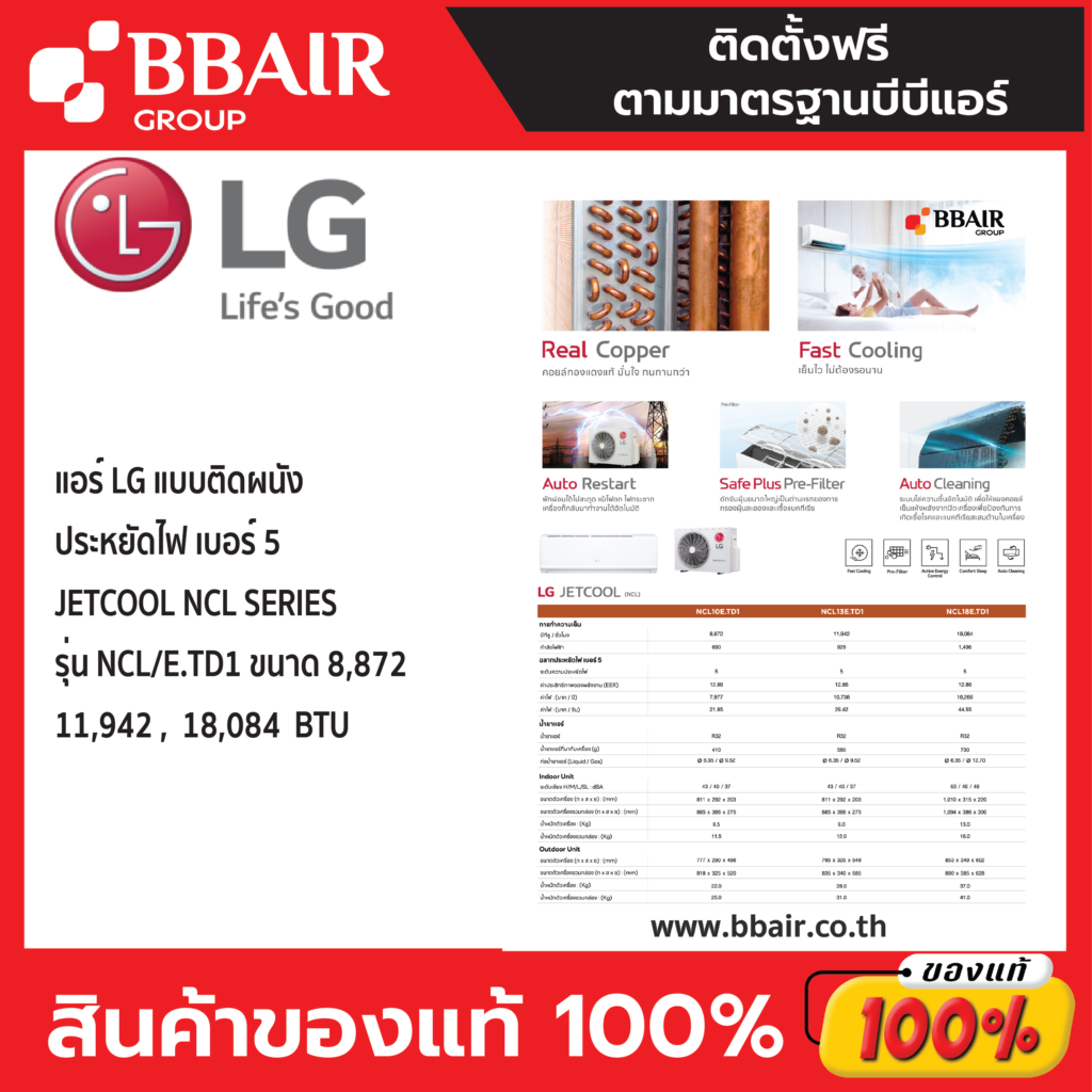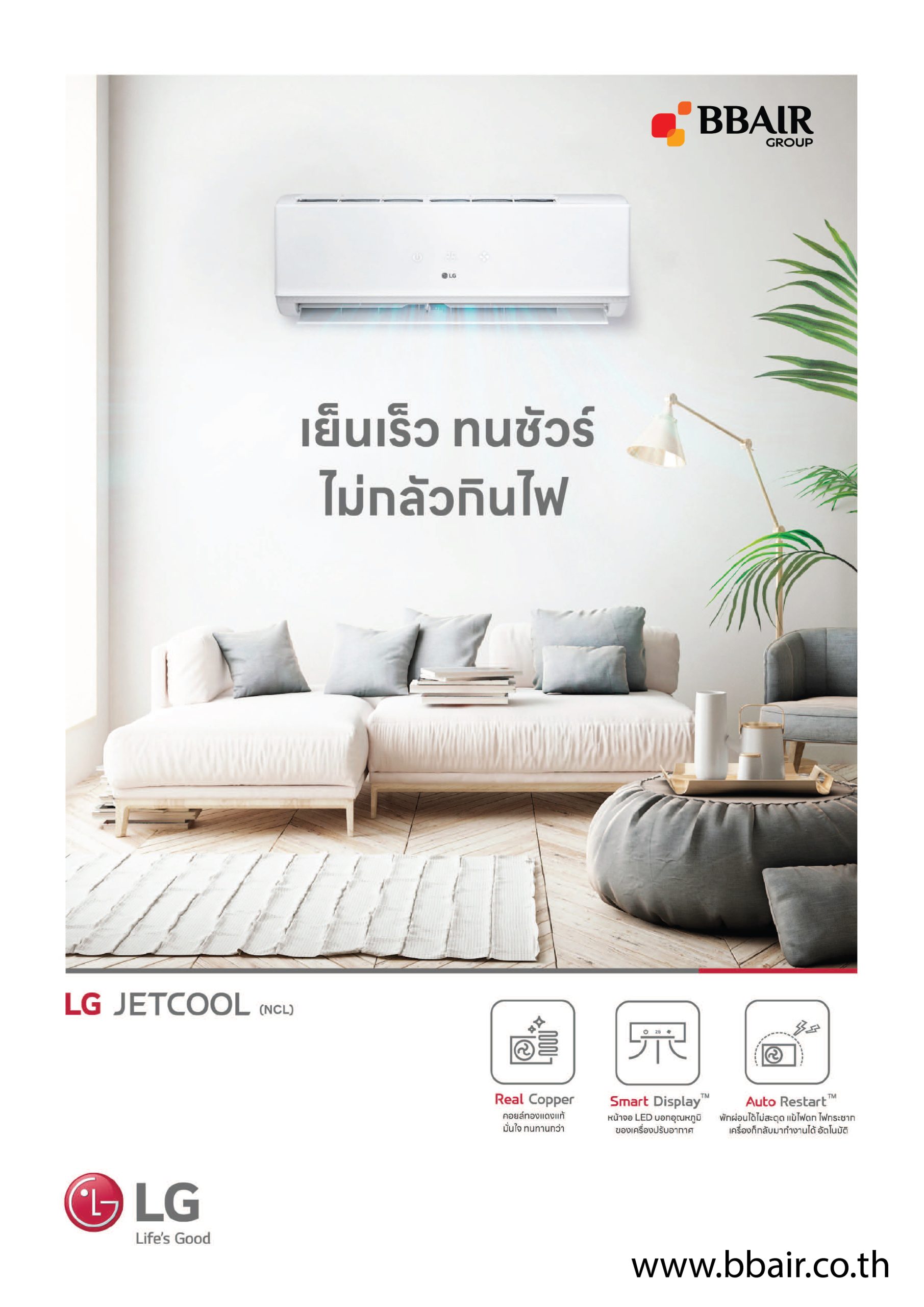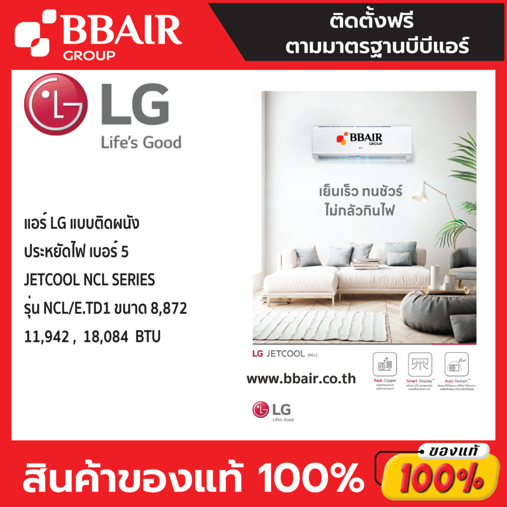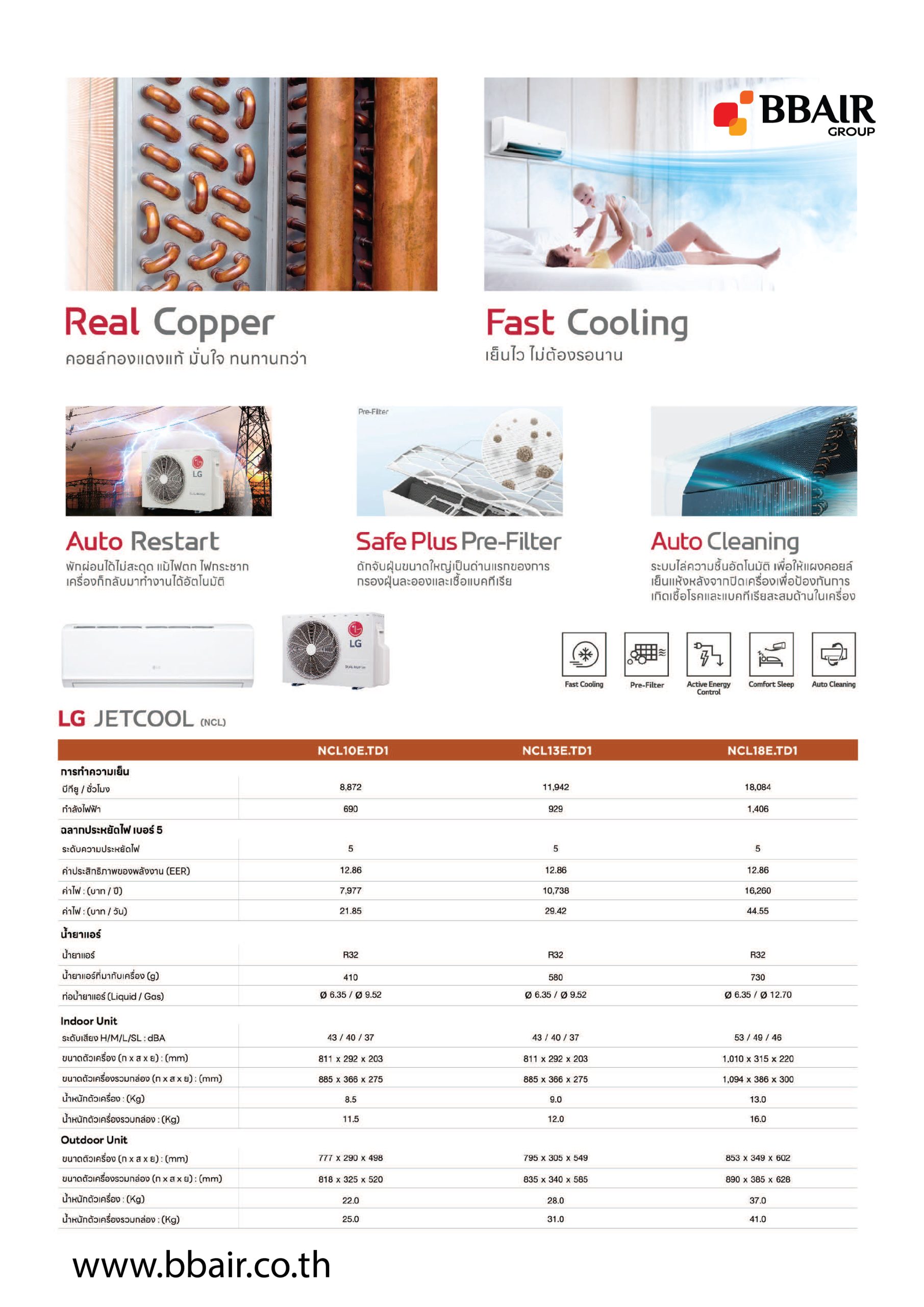 คุณสมบัติสินค้าของแอร์แอลจี แบบติดผนัง ประหยัดไฟ เบอร์ 5 JETCOOL NCL SERIES น้ำยาแอร์ R-32