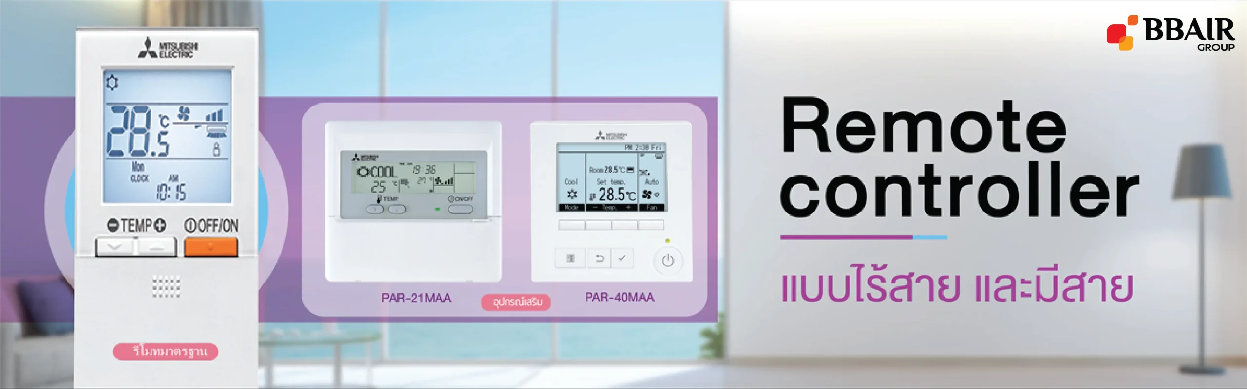 - ควบคุมการทำงานด้วยรีโมทคอนโทรลแบบไร้สาย หรือแบบมีสาย(Option)