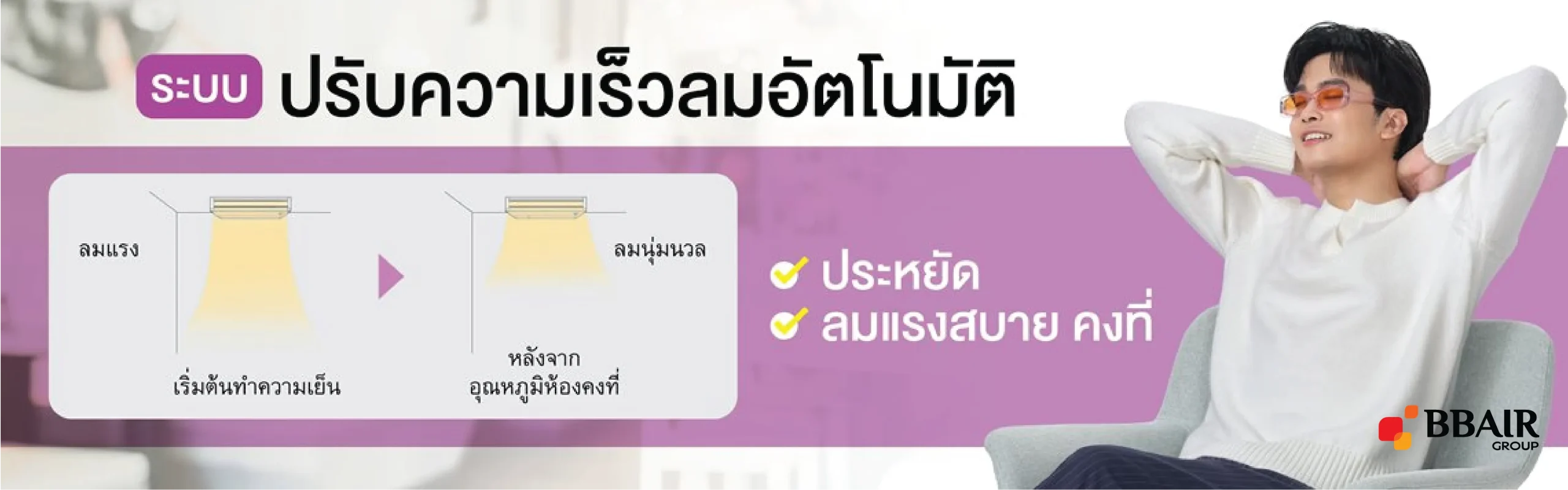 - ระบบ SWING ช่วยกระจายลมเย็นทั่วทุกจุดภายในห้องได้อย่างรวดเร็ว