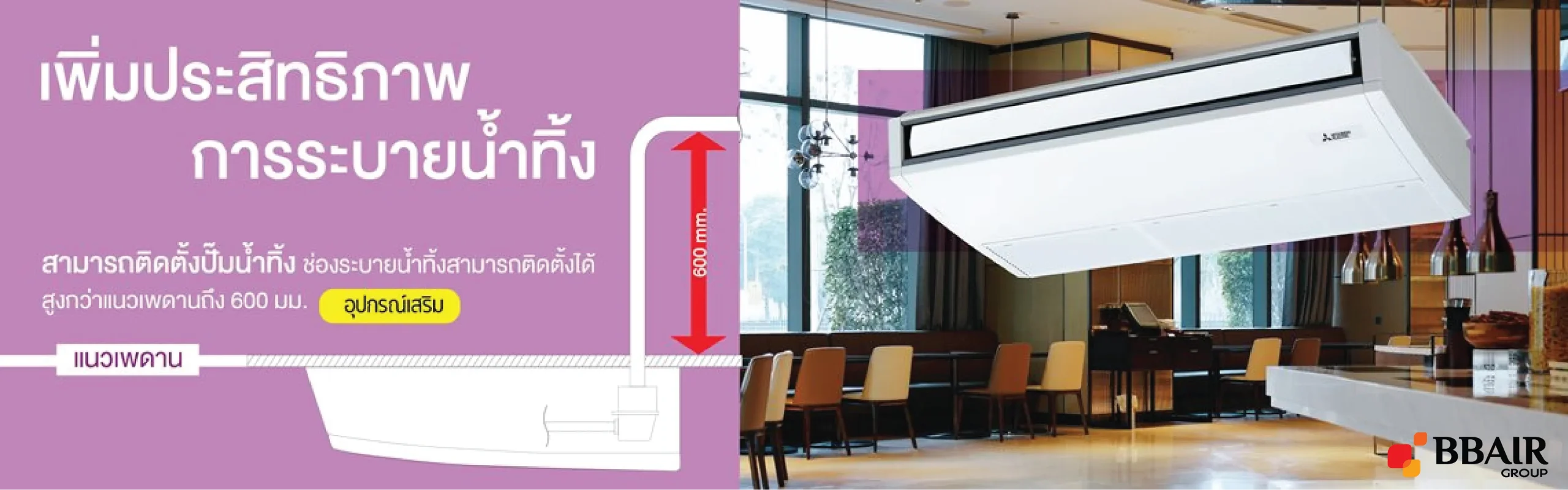 - สามารถเดินท่อน้ำยาได้ไกลถึง 50 เมตร (ตรวจสอบระยะเดินท่อได้จากในแคตตาล็อก)