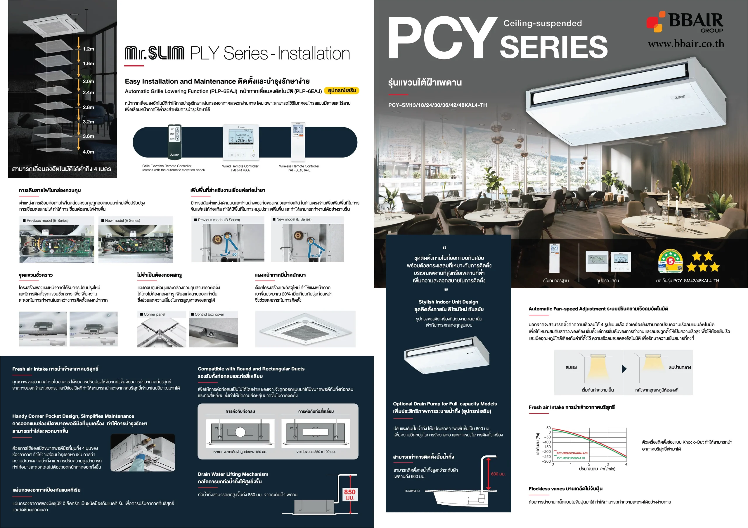 - สามารถเดินท่อน้ำยาได้ไกลถึง 50 เมตร (ตรวจสอบระยะเดินท่อได้จากในแคตตาล็อก)