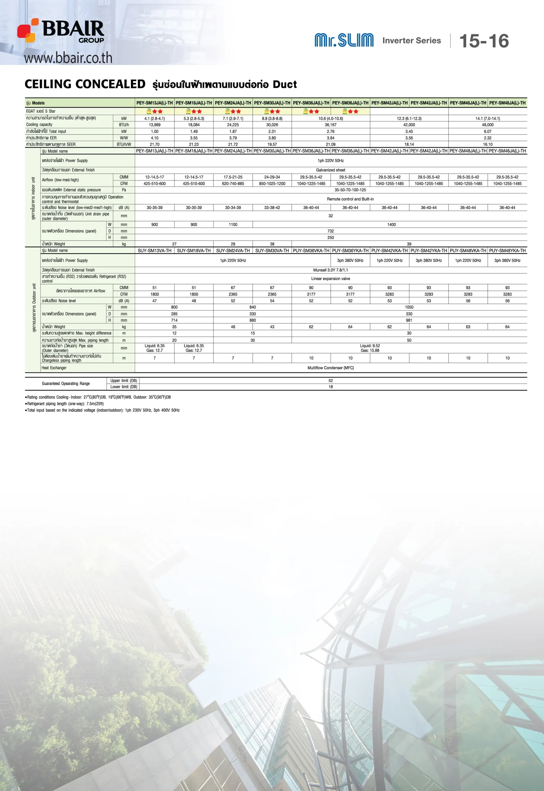 คุณสมบัติสินค้าของแอร์มิตซูบิชิ มิสเตอร์สลิม Mitsubishi Mr.Slim แบบเปลือยท่อลม อินเวอร์เตอร์ PEY-SM SERIES น้ำยาแอร์ R-32