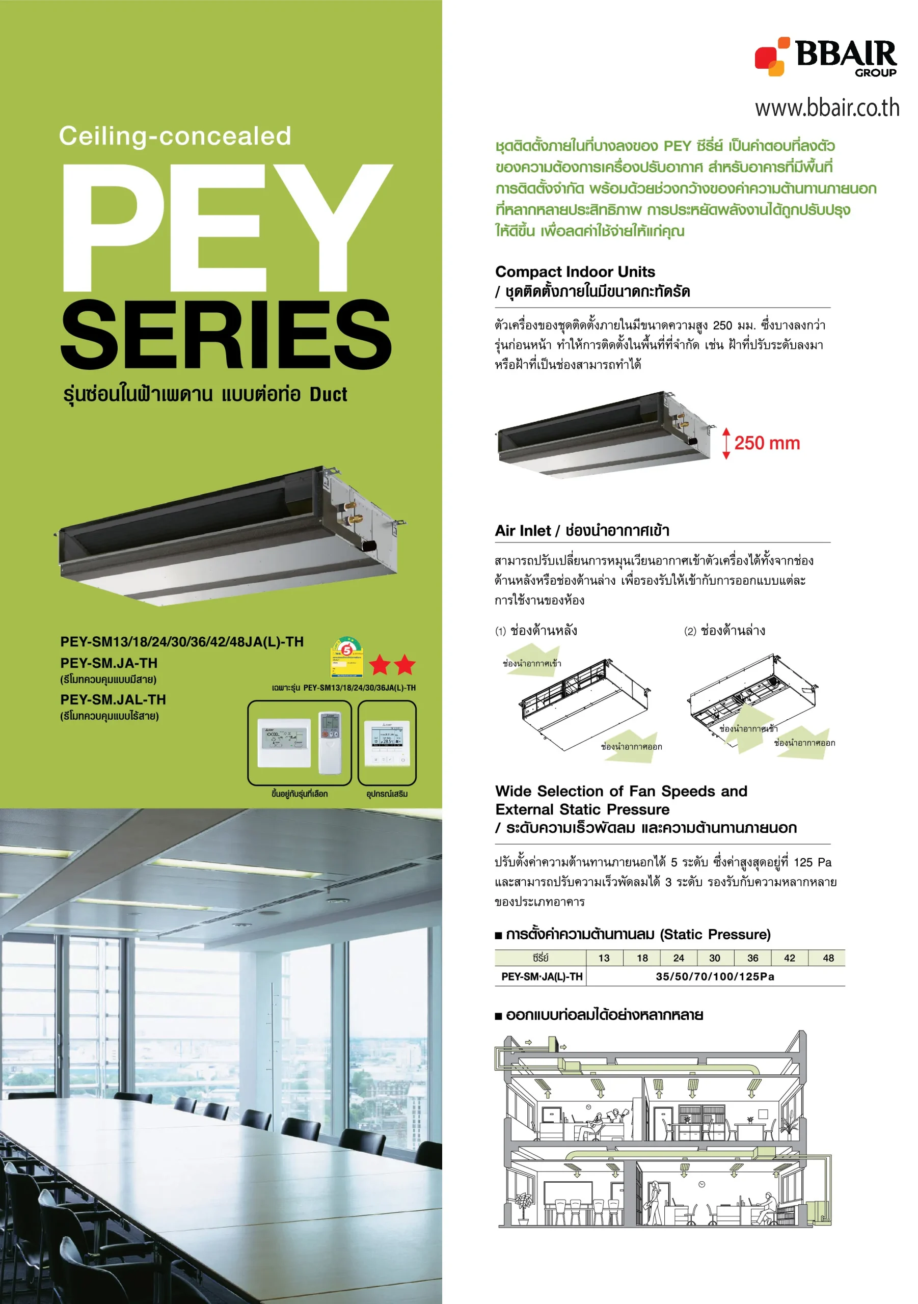 คุณสมบัติสินค้าของแอร์มิตซูบิชิ มิสเตอร์สลิม Mitsubishi Mr.Slim แบบเปลือยท่อลม อินเวอร์เตอร์ PEY-SM SERIES น้ำยาแอร์ R-32