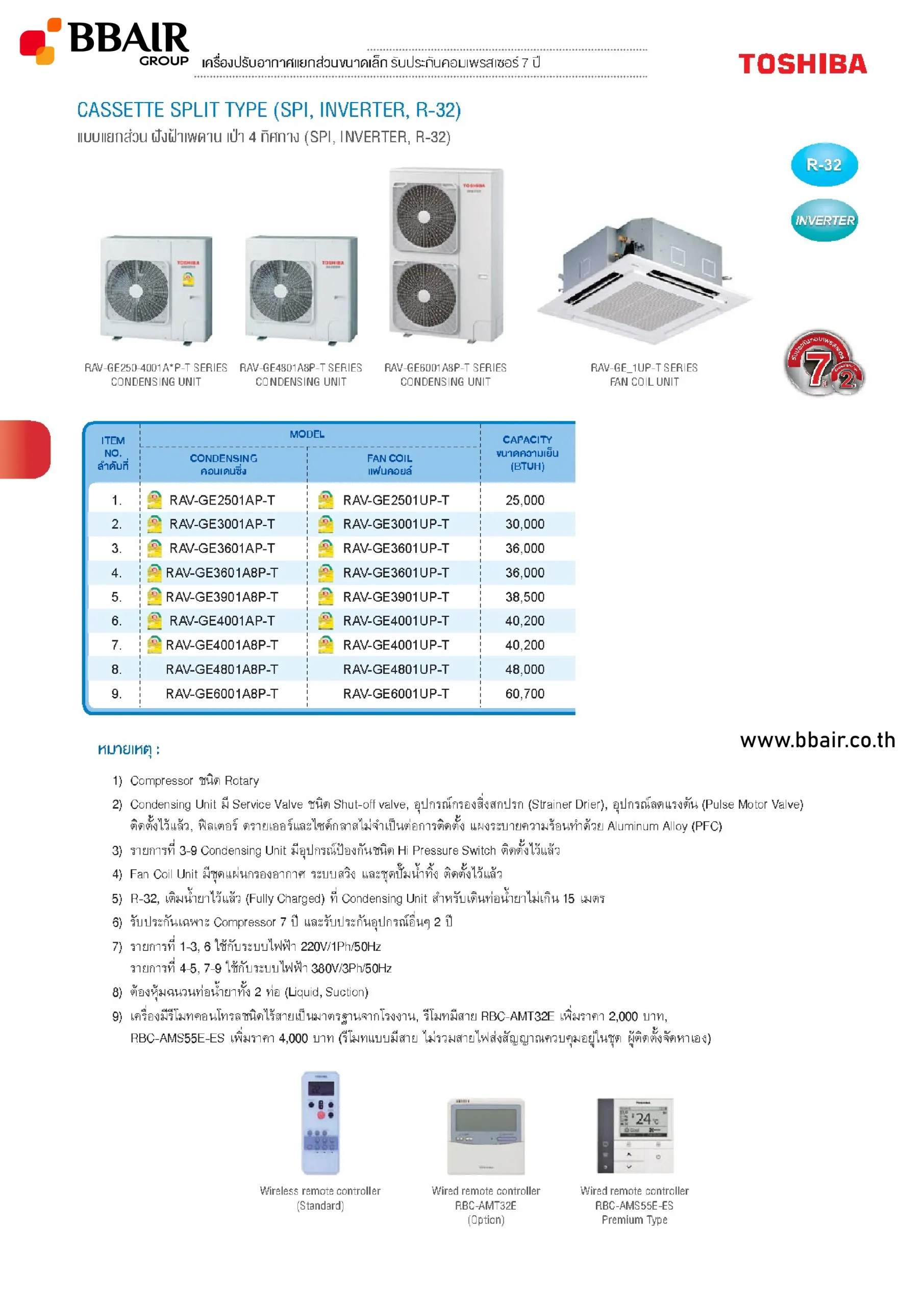 คุณสมบัติสินค้าของแอร์โตชิบา แบบสี่ทิศทาง อินเวอเตอร์ GE-UP Inverter SERIES น้ำยาแอร์ R-32