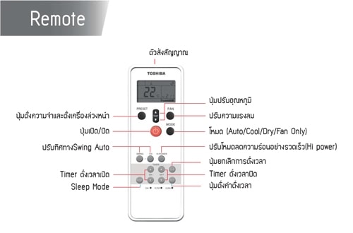 - สามารถ Group remote control เพื่อใช้รีโมทคอนโทรล 1 ตัว สามารถควบคุมการทำงานของเครื่องได้สูงสุด 8 เครื่อง