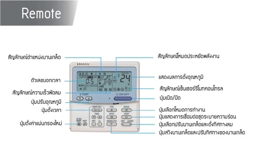- ควบคุมการสั่งเปิด-ปิด เครื่องปรับอากาศ ปริมาณลม อุณหภูมิ และระบบสวิง โดยใช้สายส่งสัญญาณชนิด 2 แกน
