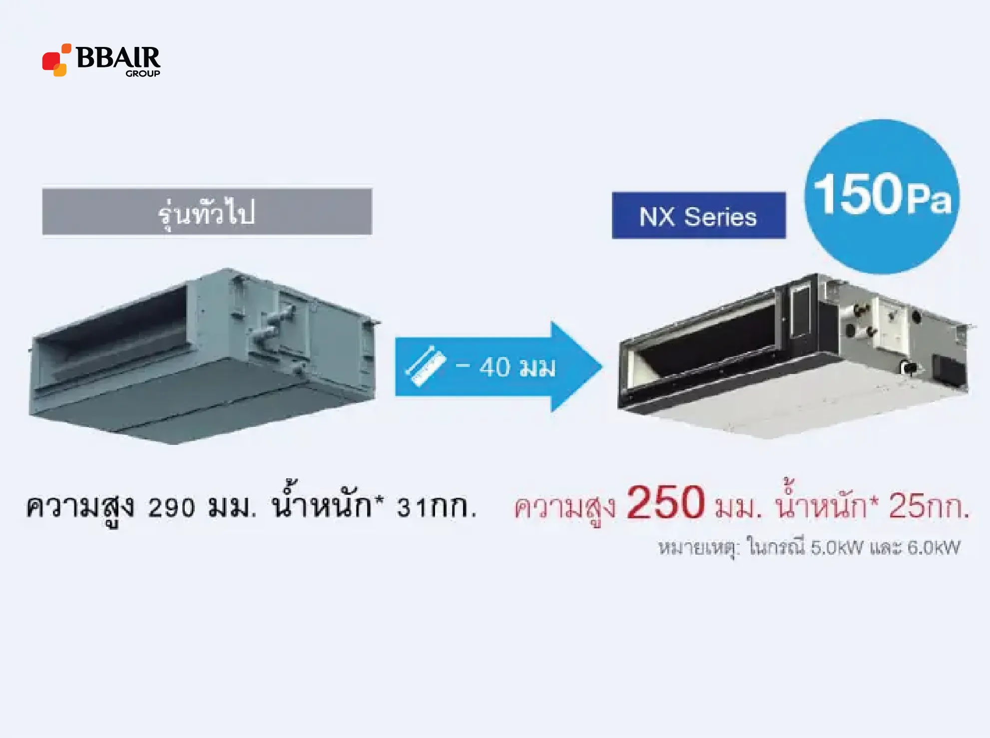 เครื่องปรับอากาศ NX series ชนิดต่อท่อแบบปรับได้รุ่นใหม่ สามารถติดตั้งได้ทั้งในแนวนอนและแนวตั้งโดยไม่จำเป็นต้องมีการดัดแปลง