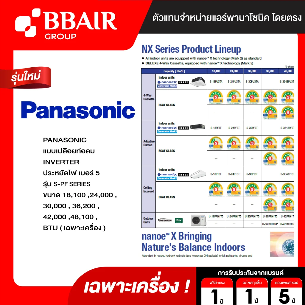คุณสมบัติสินค้าของแอร์แอร์พานาโซนิคน แบบเปลือย INVERTER S-PF SERIES น้ำยาแอร์ R-32