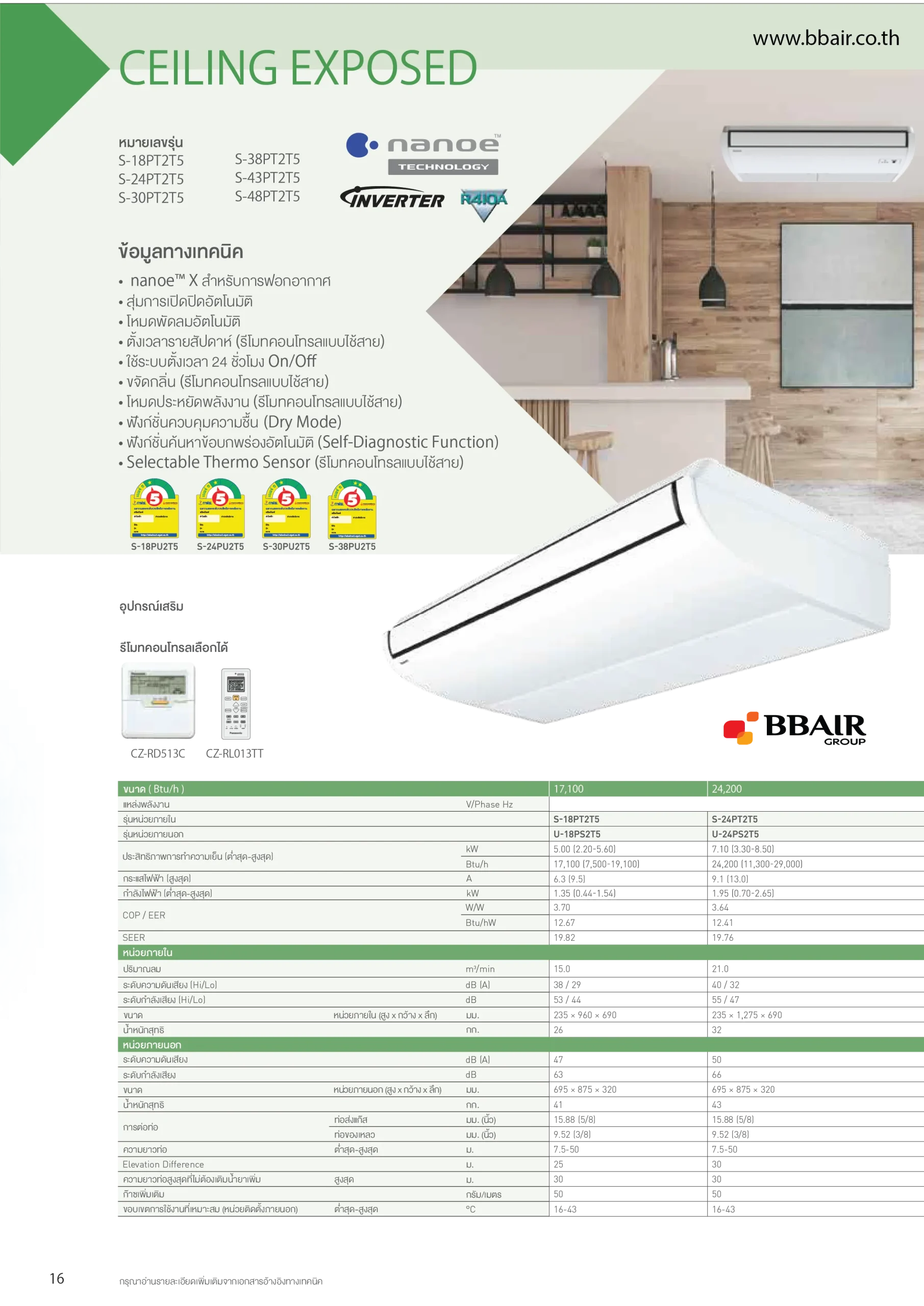 คุณสมบัติสินค้าของแอร์แอร์พานาโซนิคน แบบแขวนอินเวอร์เตอร์ EXPOSED S-PT2T5 น้ำยาแอร์ R-410