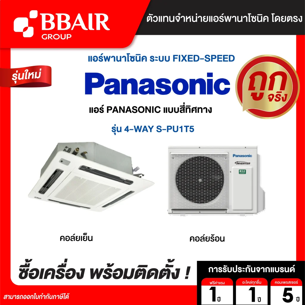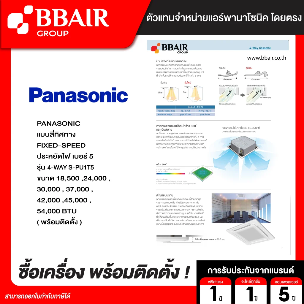 4-WAY S-PU1T5 คือรุ่นของเครื่องปรับอากาศแบบฝังฝ้าสี่ทิศทาง (4-way cassette air conditioner) พานาโซนิค (panasonic) รุ่นนี้มีจุดเด่นที่การกระจายลมเย็นรอบทิศทาง 360 องศา และมีระบบฟอกอากาศ