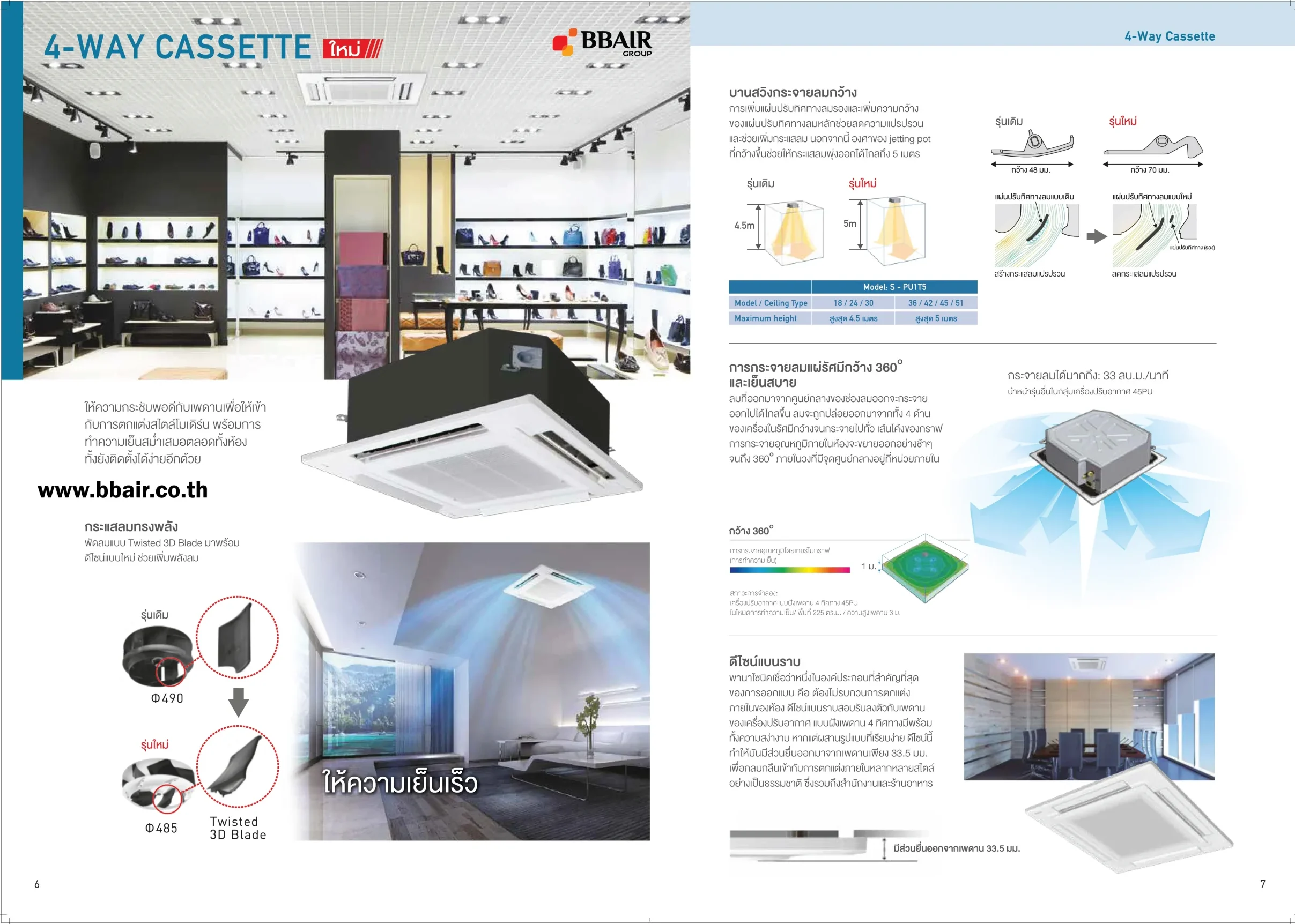 - การใช้งาน: เหมาะสำหรับห้องที่ต้องการการกระจายความเย็นอย่างทั่วถึง.