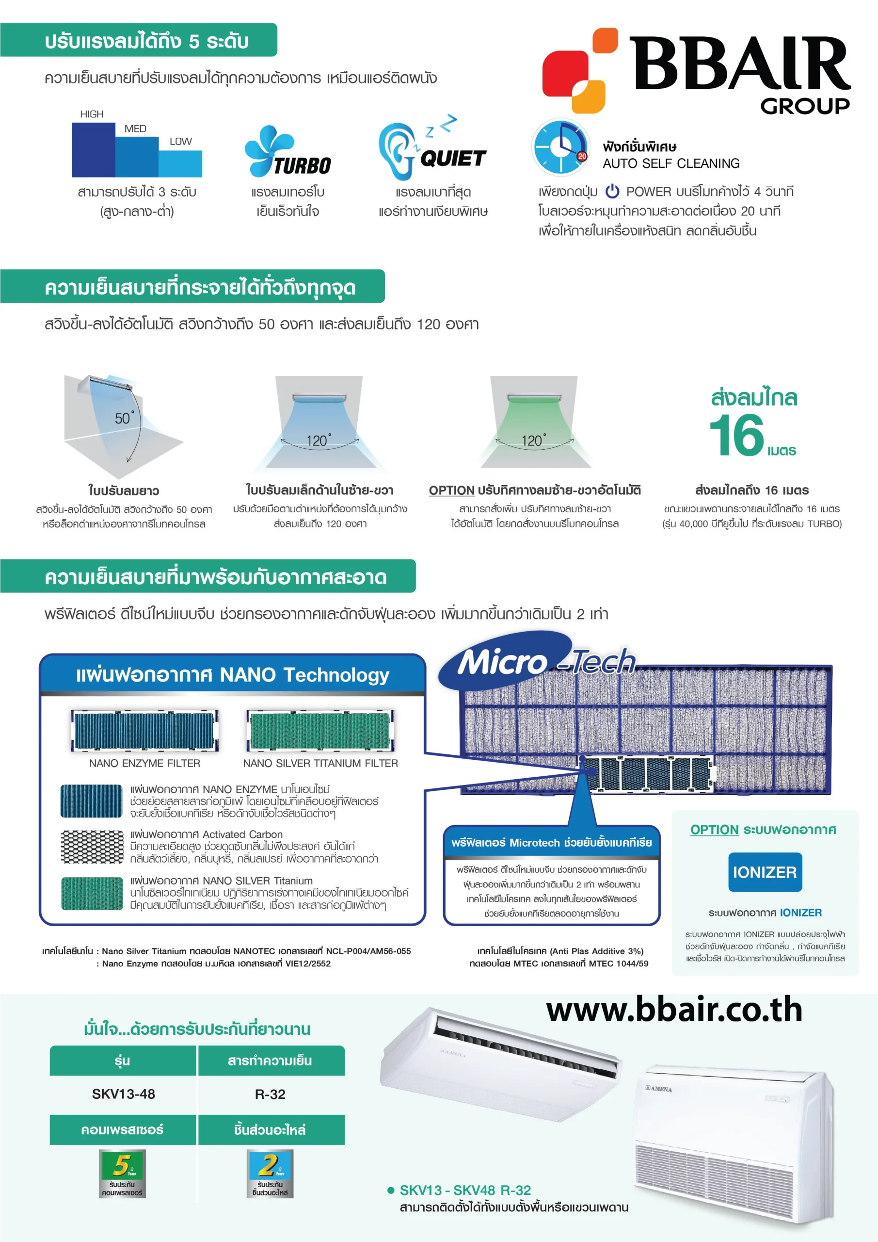 • SKV48B-MNVKU/KCV48B-RSYKU (R-32) ขนาด 48,000(21,500-49,000) BTU (380 V) รีโมทไร้สาย