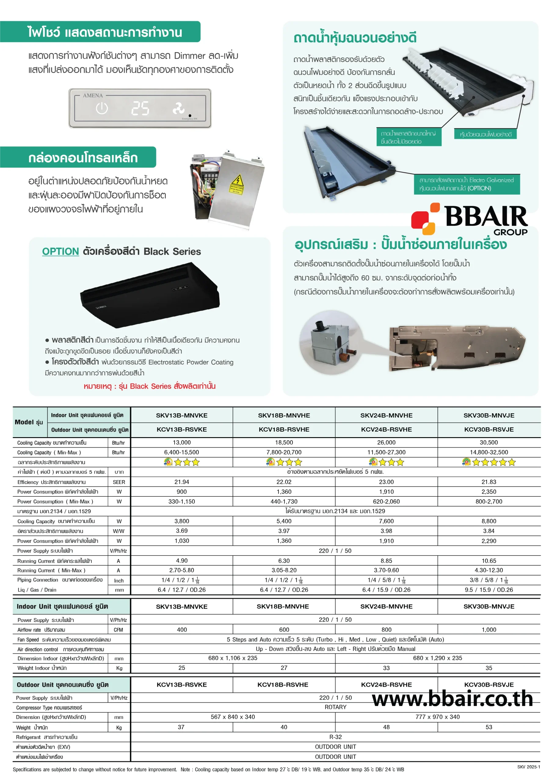 • SKV24B-MNVKE/KCV24B-RSVKE (R-32) ขนาด 26,000(11,500-27,300) BTU (220 V) รีโมทไร้สาย