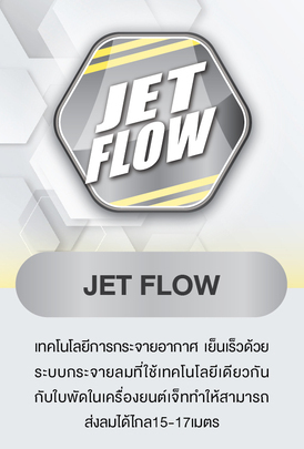 เทคโนโลยีการกระจายอากาศ เย็นเร็วด้วยระบบกระจายลมที่ใช้เทคโนโลยีเดียวกันกับใบพัดในเครื่องยนต์เจ็ททำให้สามารถส่งลมได้ไกล15-17เมตรHI POWER