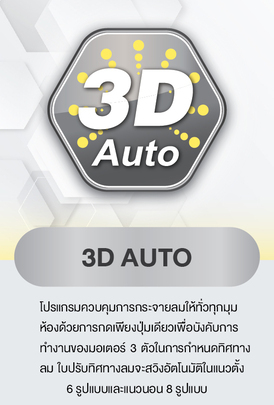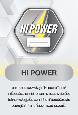 การทำงานแบบพลังสูง “Hi power” ทำให้เครื่องปรับอากาศสามารถทำงานอย่างต่อเนื่องในไหมดพลังสูงเป็นเวลา 15 นาทีช่วยปรับระดับอุณหภูมิให้ได้ตามที่ต้องการอย่างรวดเร็ว 3DAUTO