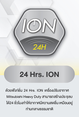 ด้วยฟังก์ชั่น 24 ION เครื่องปรับอากาศ Mitsubishi Heavy Duty สามารถสร้างประจุลบตลอด24 ชั่วโมง ทำให้อากาศมีความสดชื่นเสมือนหนึ่งอยู่ท่ามกลางธรรมชาติ