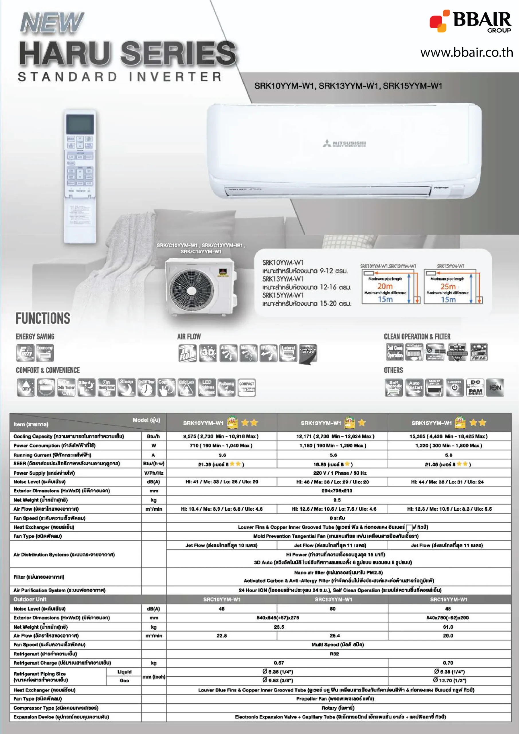 • SRK - 15YYM-W1/SRC15YYM-W1 ขนาด 15,385 ( 4,436 -18,425 ) BTU