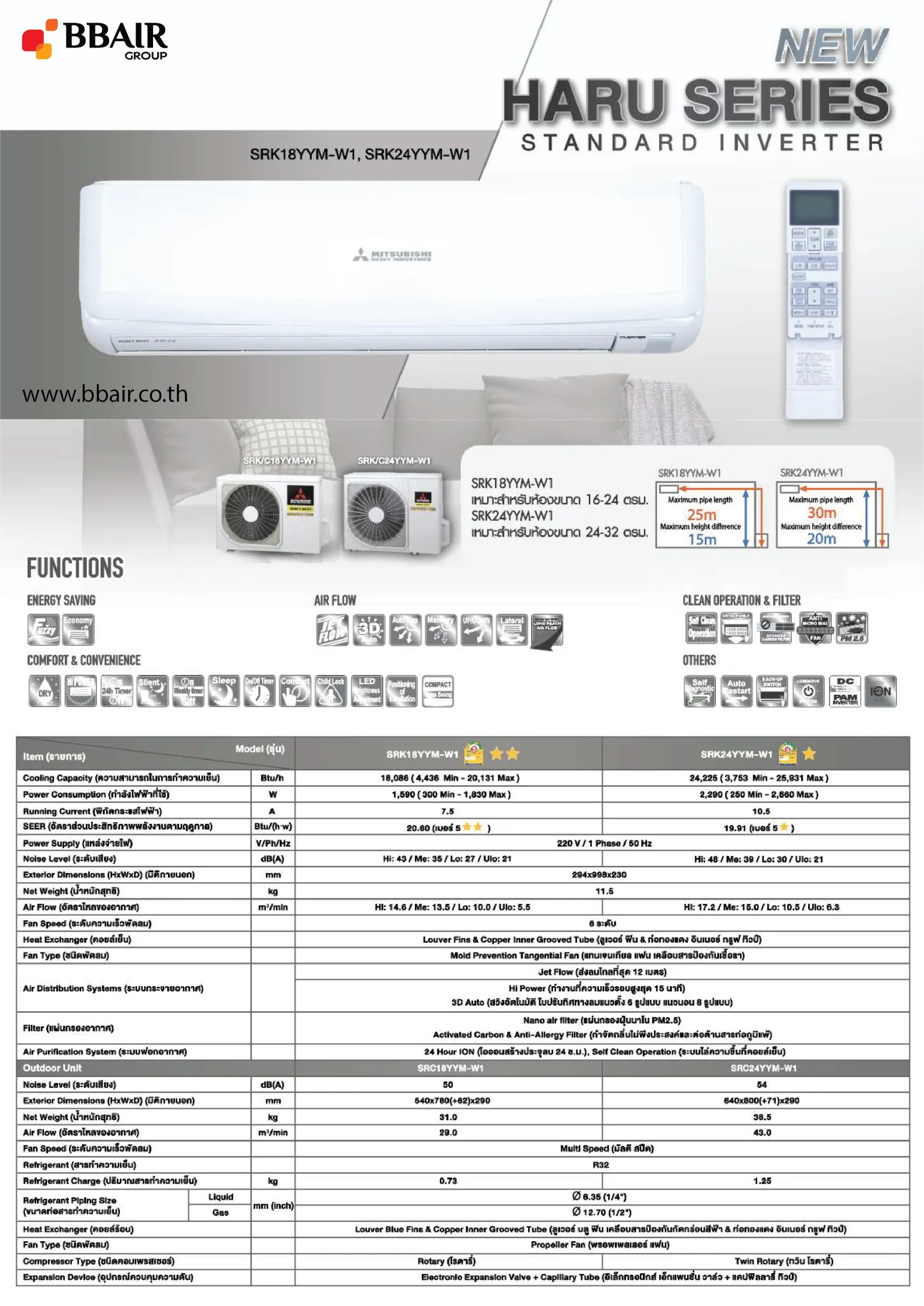 • SRK - 18YYM-W1/SRC18YYM-W1 ขนาด 18,086 ( 4,436 -20,131 ) BTU