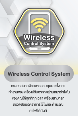 - Wireiess Control System สะดวกสบายด้วยการควบคุมและสั่งการทำงานของเครื่องปรับอากาศผ่านสมาร์ทโฟนของคุณได้ทุกที่ทุกเวลา พร้อมสามารถตรวจสอบอัตราการใช้ไฟและคำนวณค่าไฟได้ทันที
