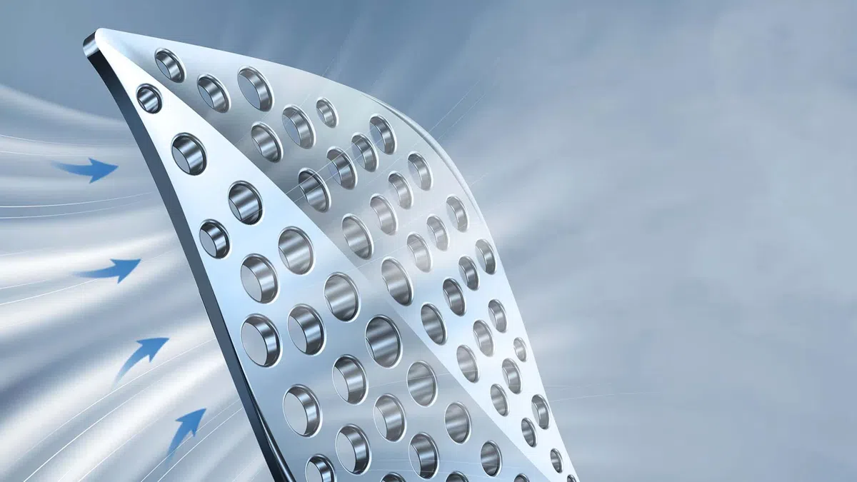 บานสวิงรูปตัว S ที่เป็นเอกสิทธิ์เฉพาะของ TCL มีรูขนาดเล็กที่มีการจัดเรียงไม่สม่ำเสมอและมีขนาดแตกต่างกันมากถึง 1,422 รู เพื่อการกระจายลมเย็นแบบ นุ่มนวลช่วยลดการปะทะผิวของคุณโดยตรง