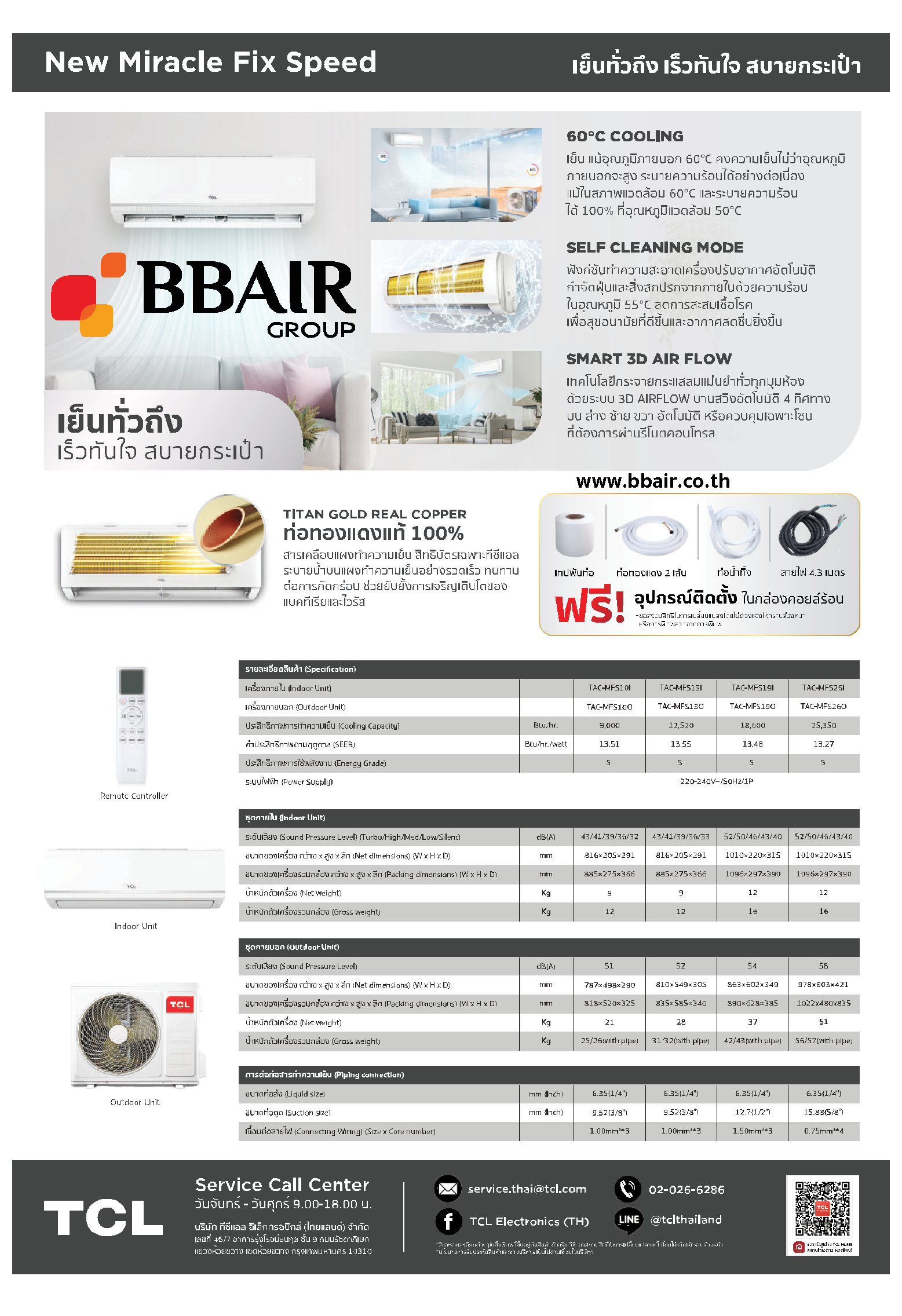 ขนาด 9,000 -24,000 BTU ส่วนเกินคิดเมตรละ 60 บาท
