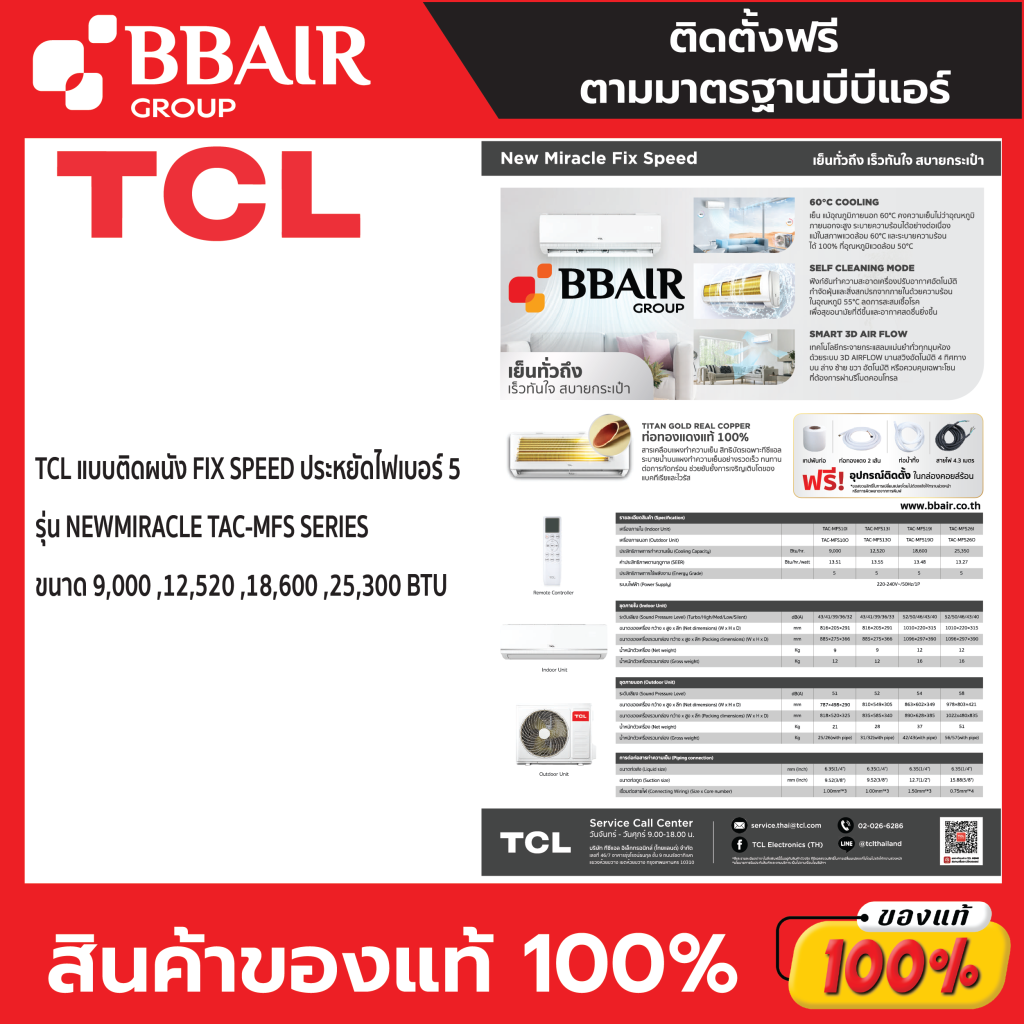 ขนาด 9,000 -24,000 BTU ส่วนเกินคิดเมตรละ 60 บาท