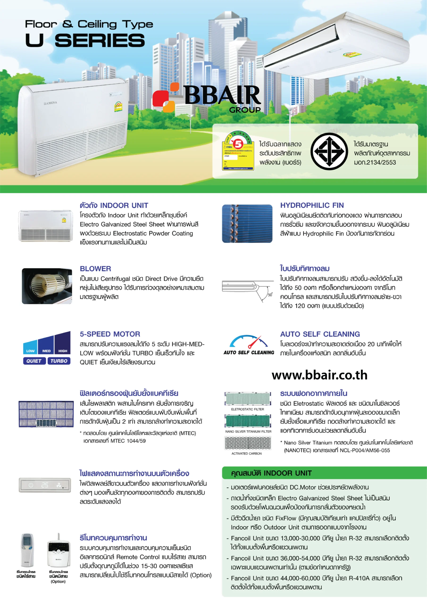 - ได้รับมาตรฐานผลิตภัณฑ์อุตสาหกรรม มอก.2134-2553 (ยกเว้นรุ่น AUF44BF-UAF60BF)