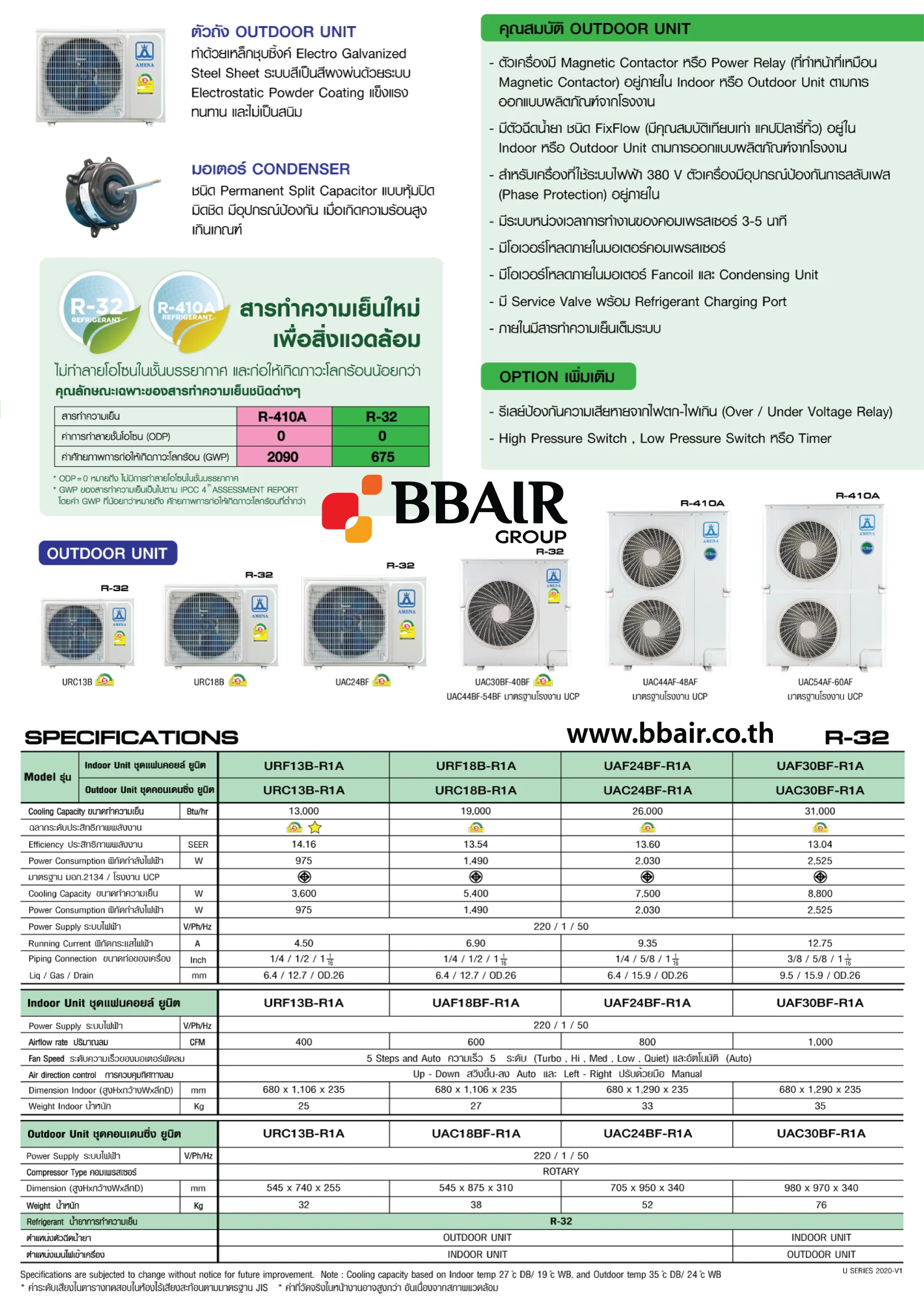 - ได้รับการรับรองฉลากประหยัดไฟเบอร์ 5 (เฉพาะรุ่น URF13B- UAF40BF)