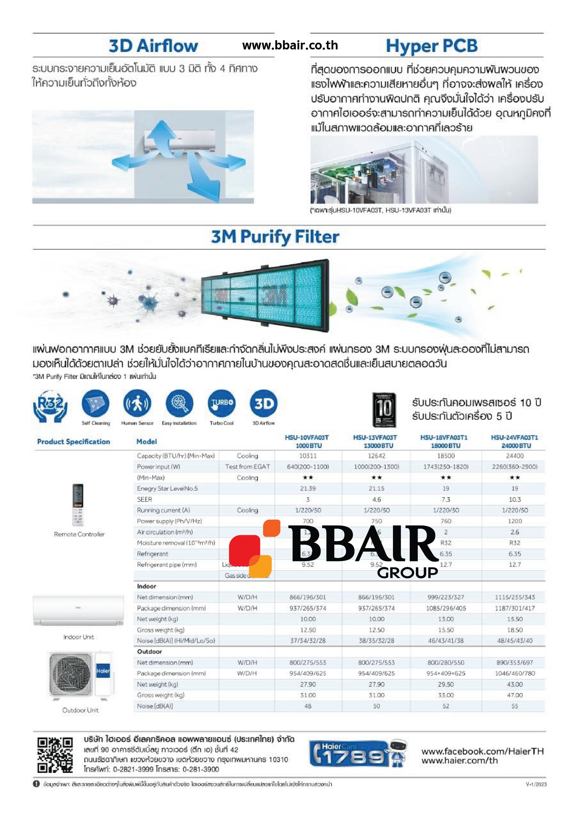 HAIER แบบติดผนัง อินเวอร์เตอร์ HYPER COOL VFA SERIES พร้อมติดตั้ง