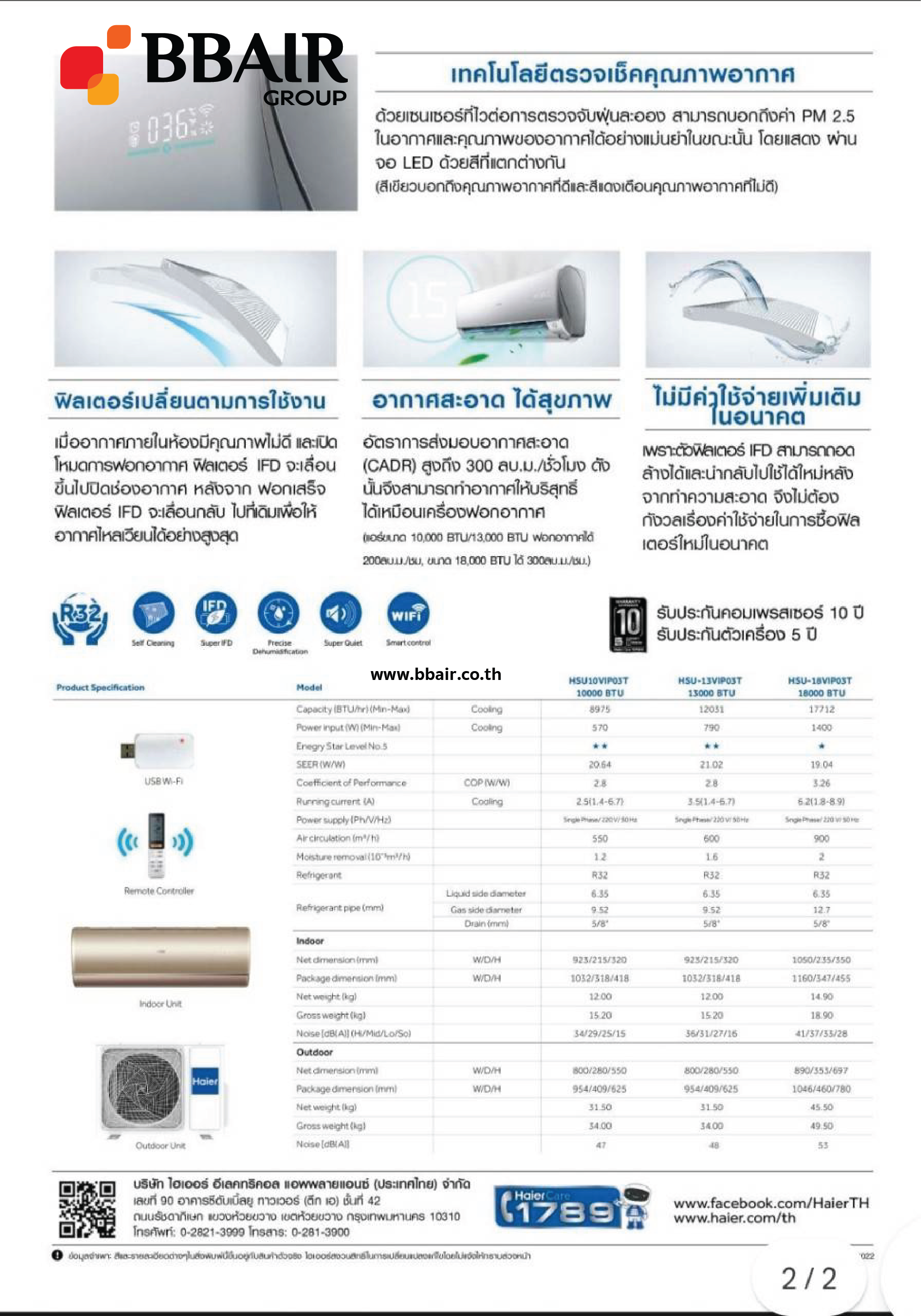 คุณสมบัติสินค้าของแอร์ไฮเออร์ HAIER แบบติดผนัง อินเวอร์เตอร์ VIP SERIES น้ำยาแอร์ R-32