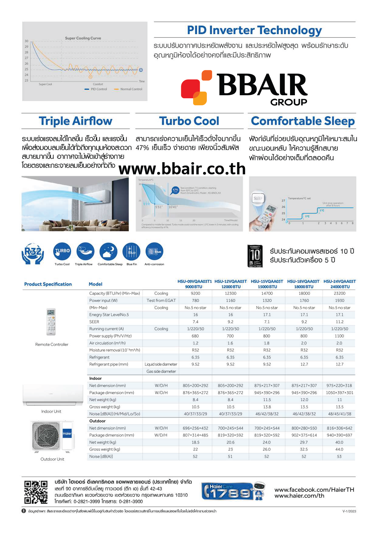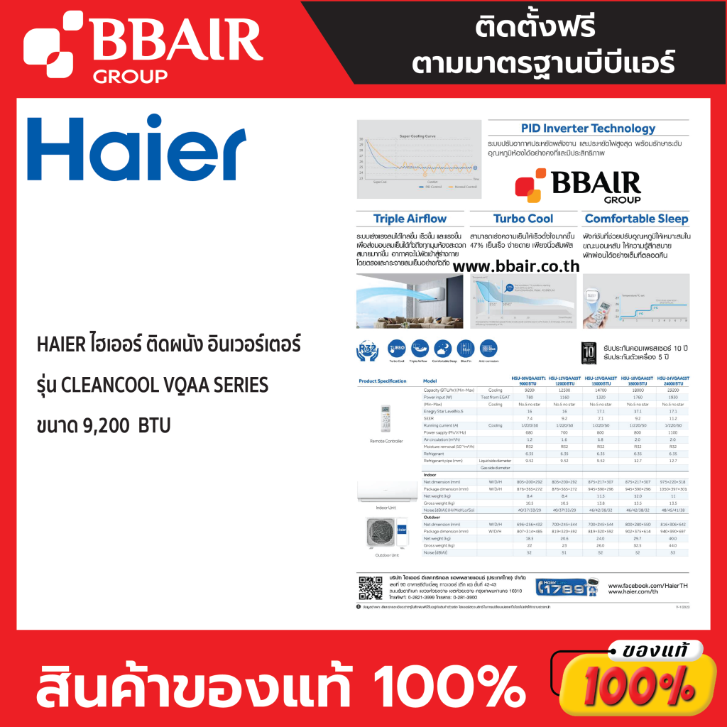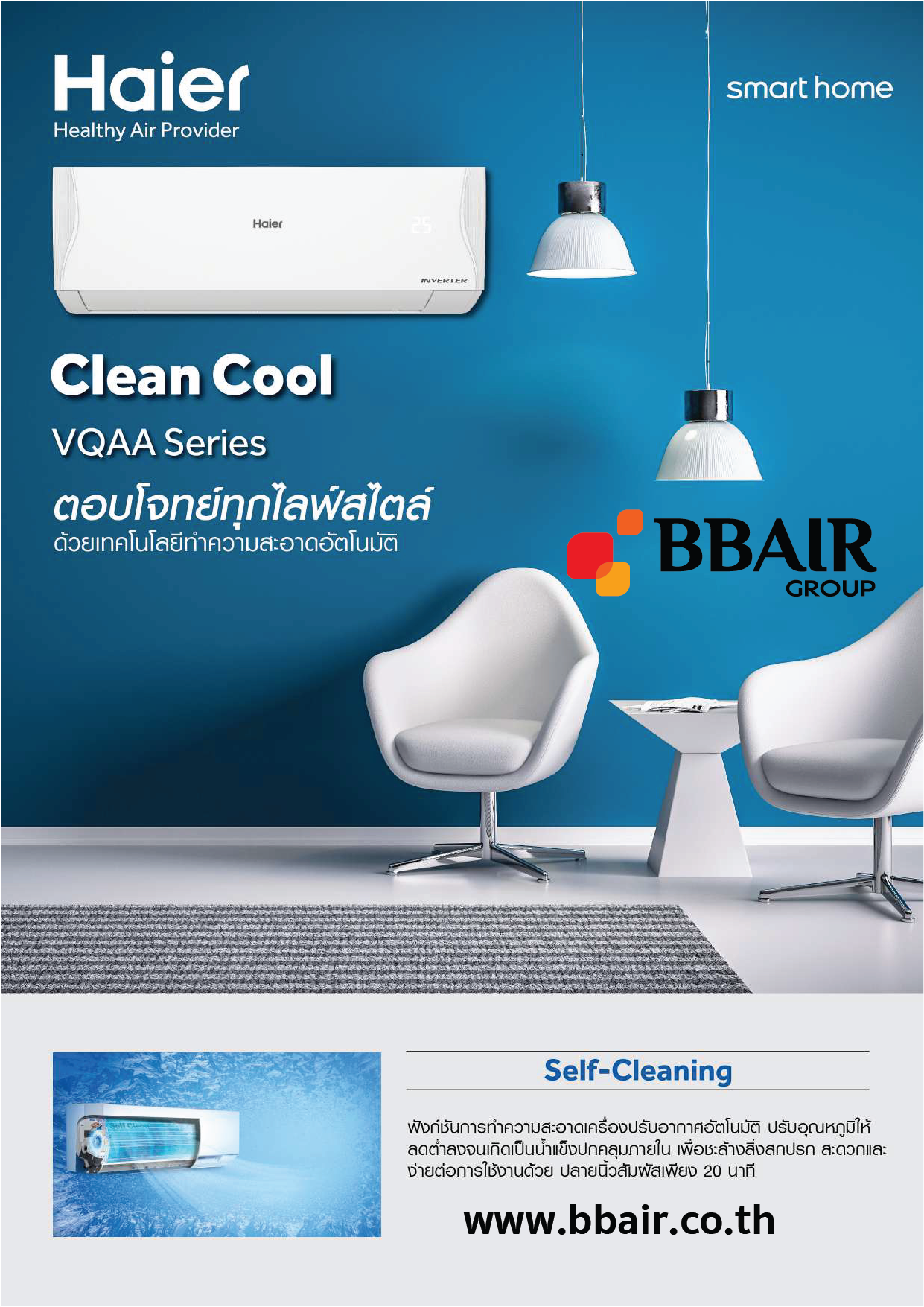 แอร์ HAIER แบบติดผนัง อินเวอร์เตอร์ Clean Cool VQAA SERIES พร้อมติดตั้ง