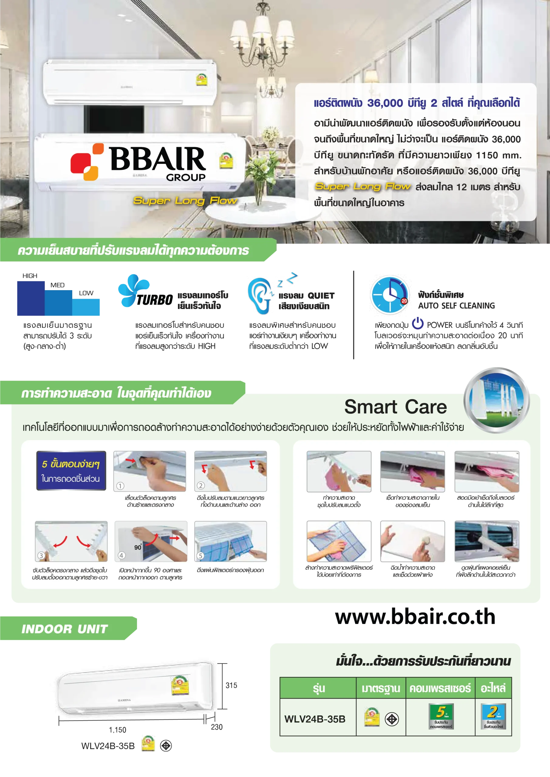 • ตัวเครื่องมีระบบ Smart Care สามารถถอดล้างทําความสะอาด เครื่องได้โดยไม่ต้องใช้เครื่องมือ