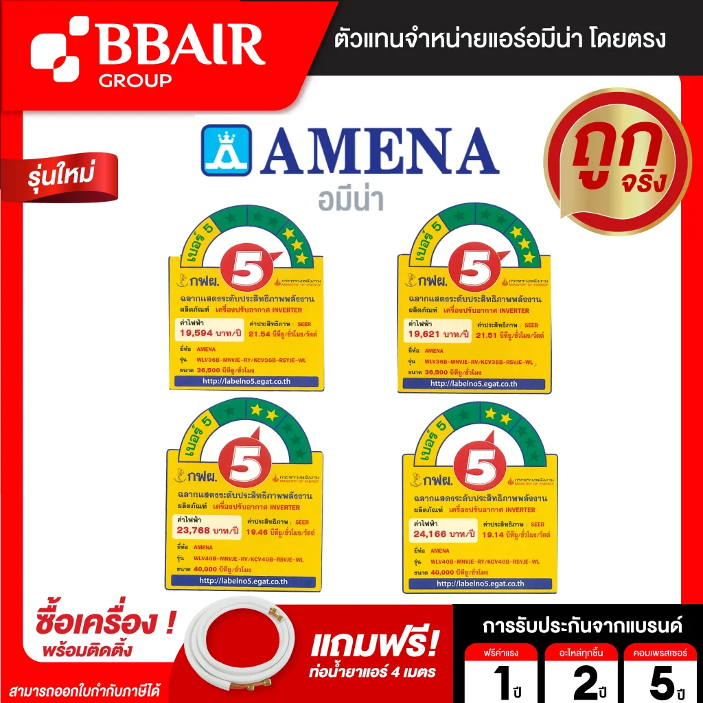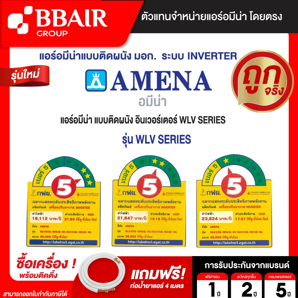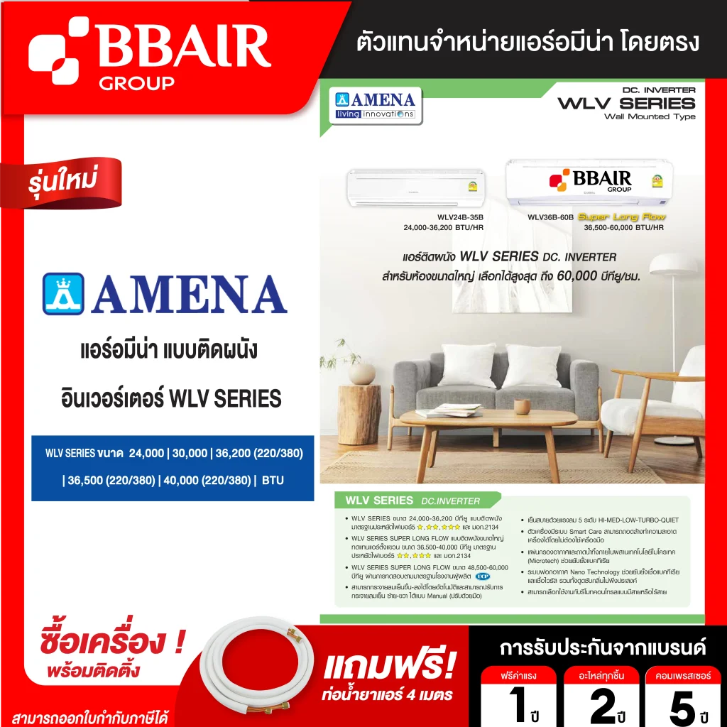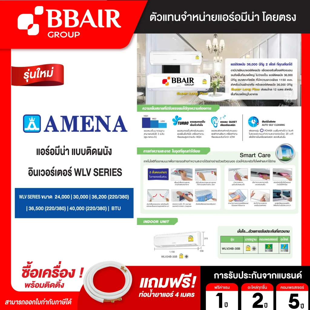 แอร์อมีน่า แบบติดผนัง อินเวอร์เตอร์ WLV SERIES น้ำยาแอร์ R-32 พร้อมติดตั้ง