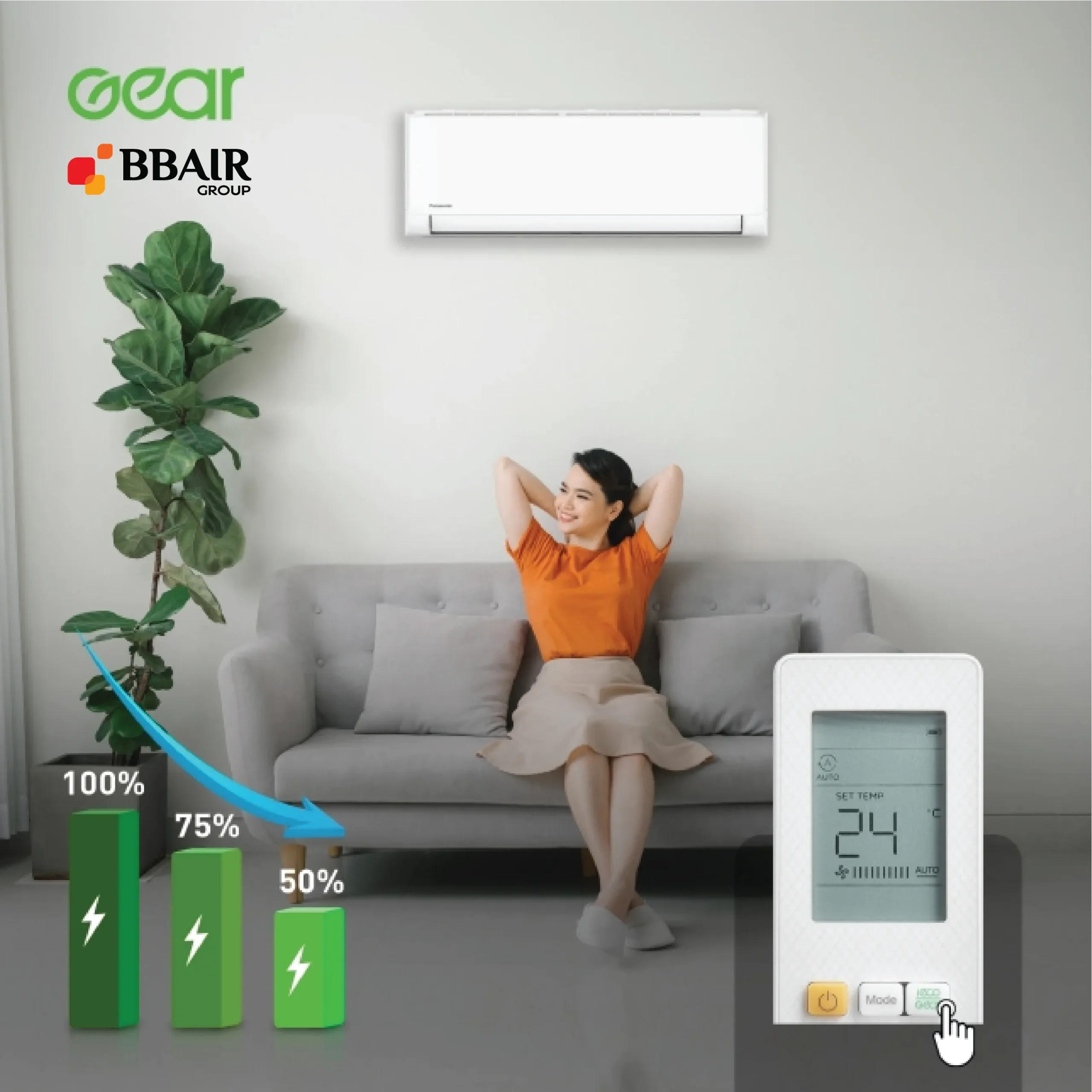 Gear Mode เป็นฟังก์ชันที่สะดวกสบายที่ช่วยให้คุณปรับแต่งประสบการณ์การทำความเย็นของคุณได้อย่างง่ายดาย ปรับปริมาณการใช้ไฟฟ้าได้อย่างง่ายดายโดยเลือกพลังงาน 50%, 75% หรือ 100% เลือกใช้ระดับพลังงานที่ต่ำกว่าเพื่อประหยัดพลังงานหรือเลือกกำลังสูงสุดเพื่อประสิทธิภาพสูงสุด ความสะดวกสบายที่ปรับแต่งได้เพียงปลายนิ้วสัมผัสด้วย Gear Mode เพื่อให้เหมาะกับสถานการณ์ของคุณมากที่สุด